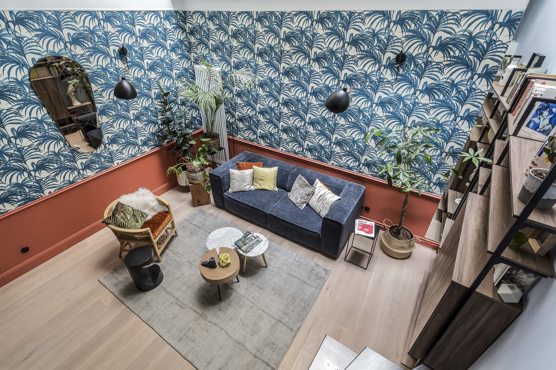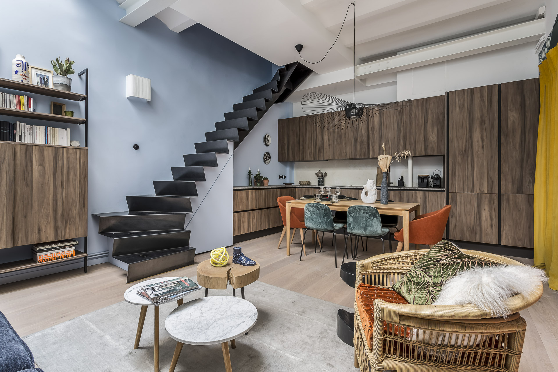 Découvrez Jungle-Art, un appartement en meublée atypique de 55 m² en duplex, situé dans le quartier recherché du Bas des Pentes / Opéra. Ancien atelier reconverti, ce logement singulier combine charme industriel et ambiance nature, avec des tons verts, des matières chaleureuses et une verrière zénithale qui inonde la pièce de lumière.