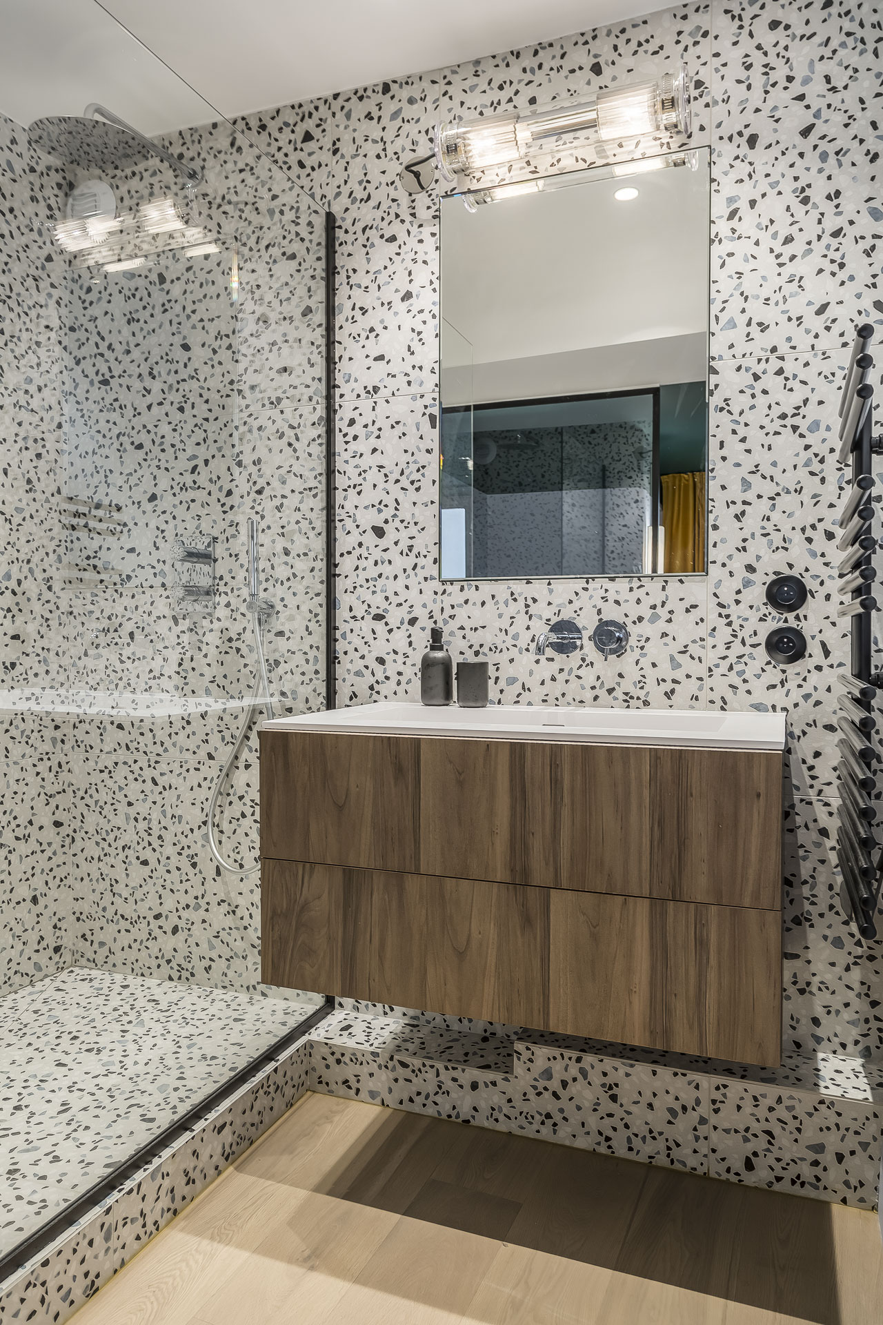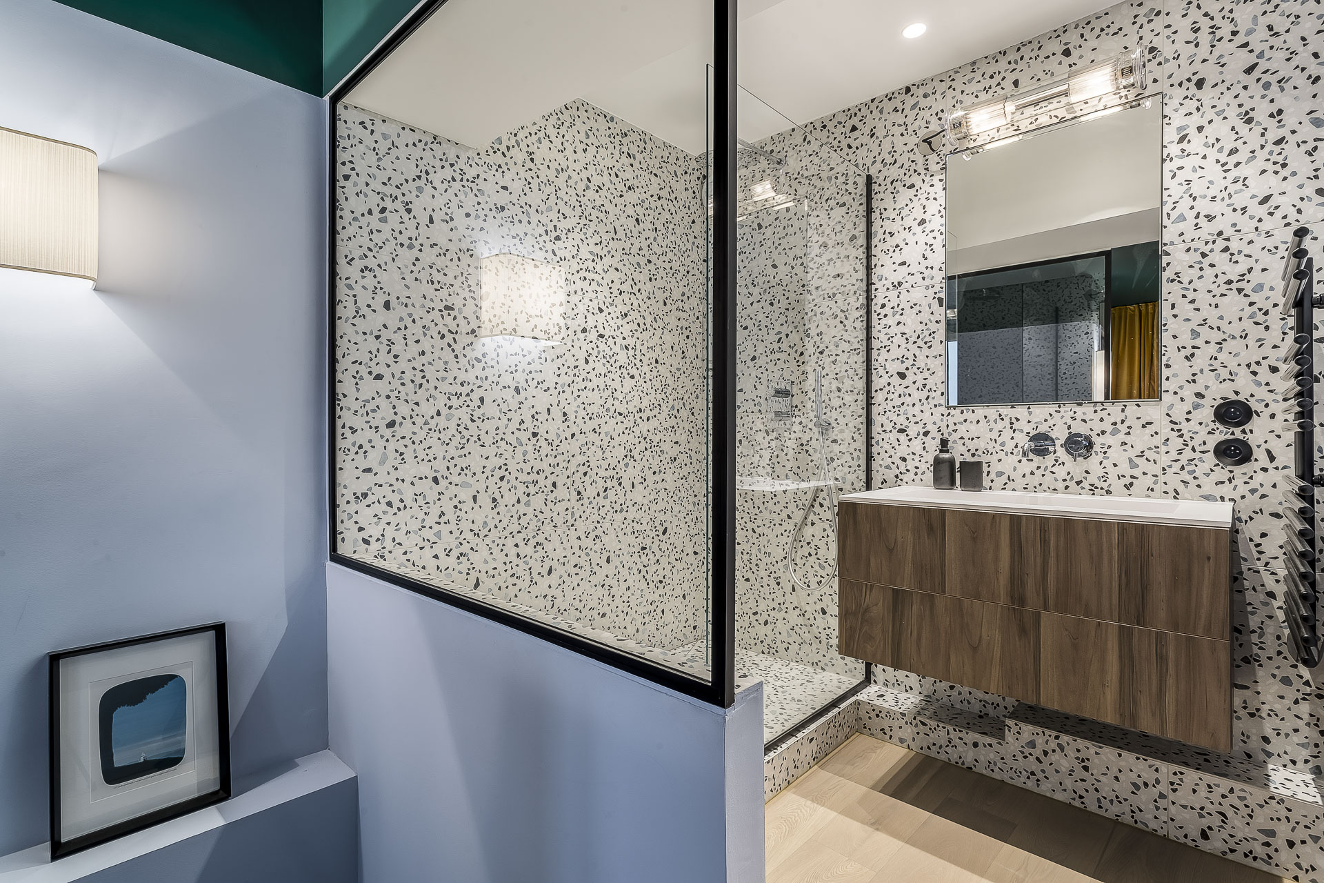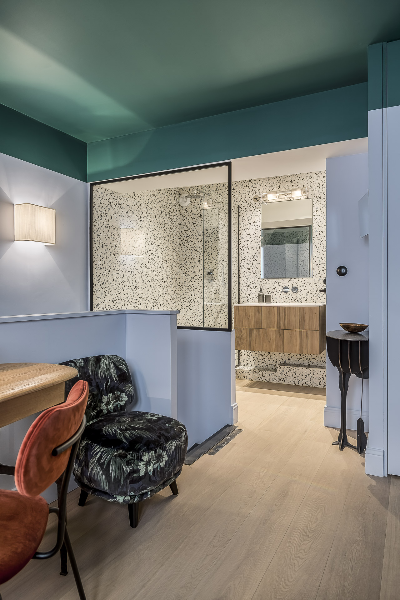 👉 À noter : l’éclairage naturel provient uniquement de cette verrière zénithale. Un choix architectural qui surprend parfois, mais qui contribue à créer une atmosphère unique, cosy et apaisante.