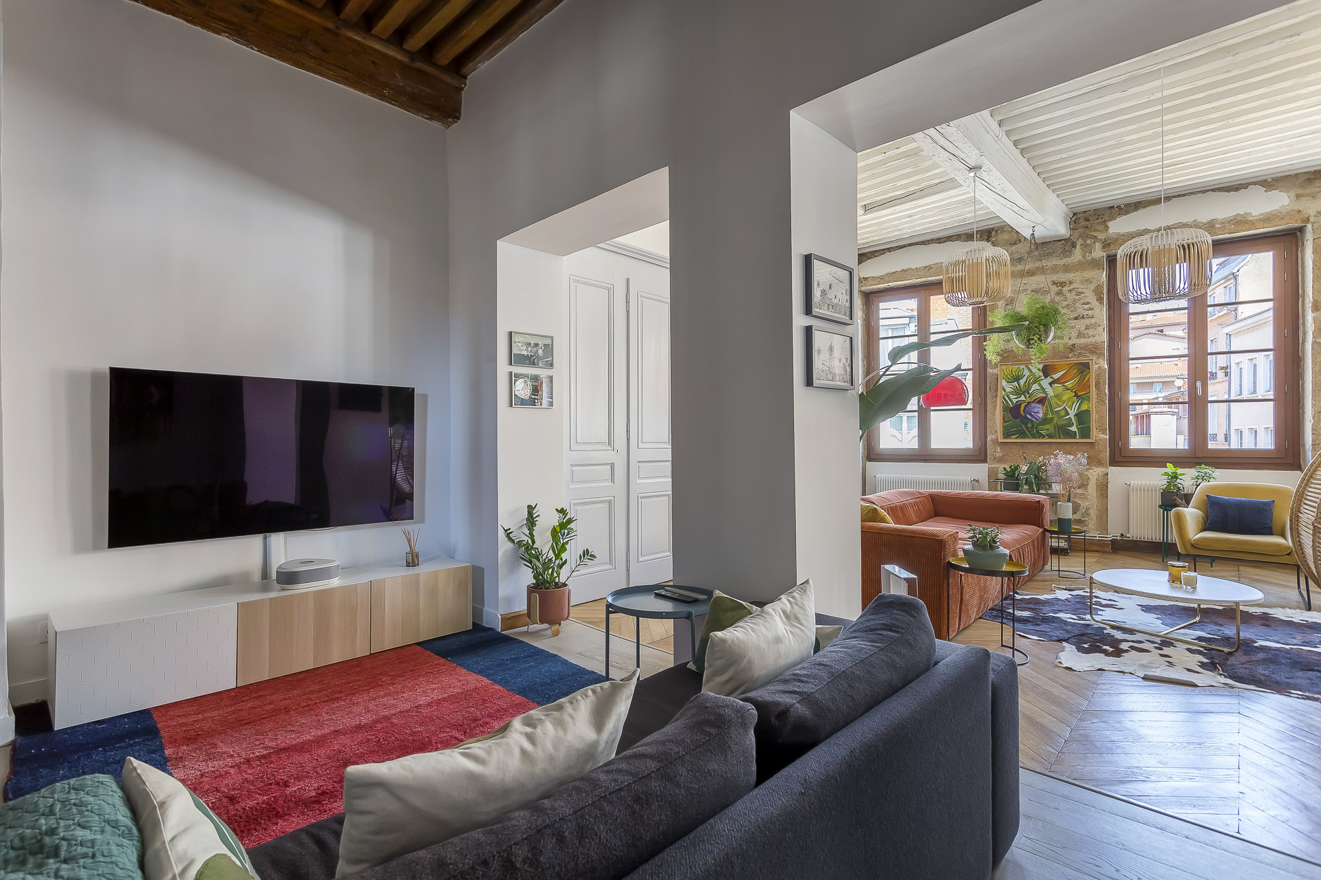 Découvrez notre Location Meublée à Lyon, un superbe appartement décoré de 123m², idéalement situé au cœur de la vibrante ville de Lyon. Que ce soit pour un déplacement professionnel ou des vacances mémorables, cet espace exceptionnel allie à merveille authenticité et modernité pour vous offrir un séjour unique, éloigné des imitations.
