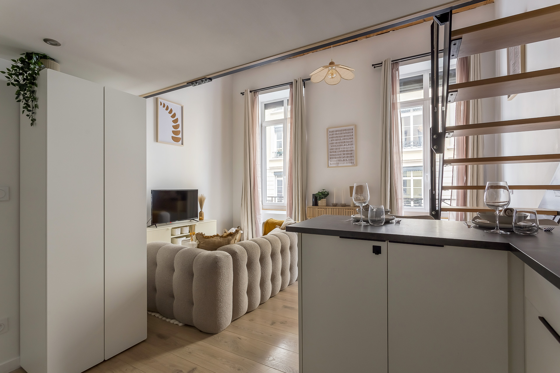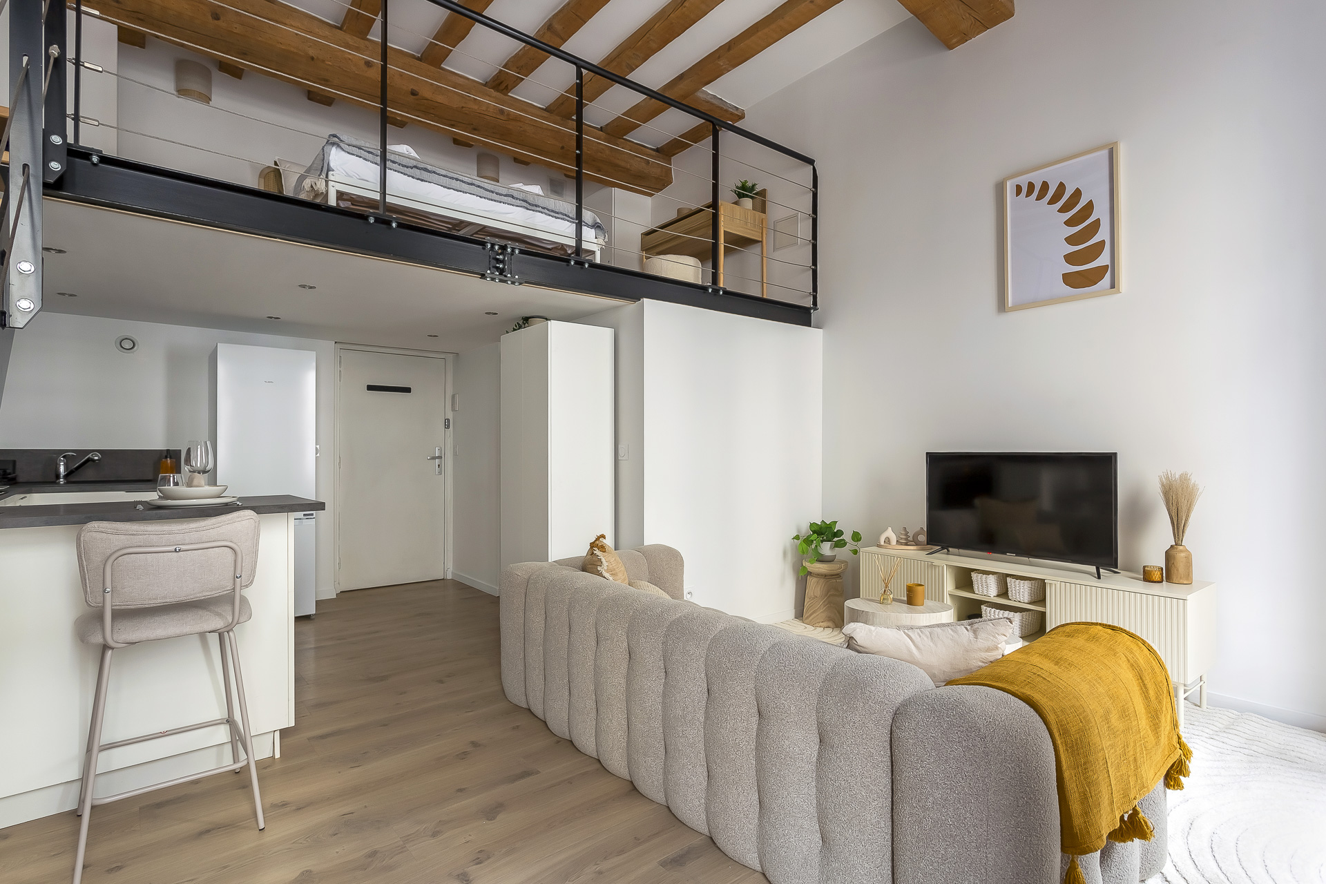 Situé dans le très recherché 6ᵉ arrondissement de Lyon, à proximité de la place Lyautey et de la passerelle du Collège, ce joli appartement de 28 m² (et 11 m² en mezzanine) est parfait pour une location meublée au mois à Lyon.