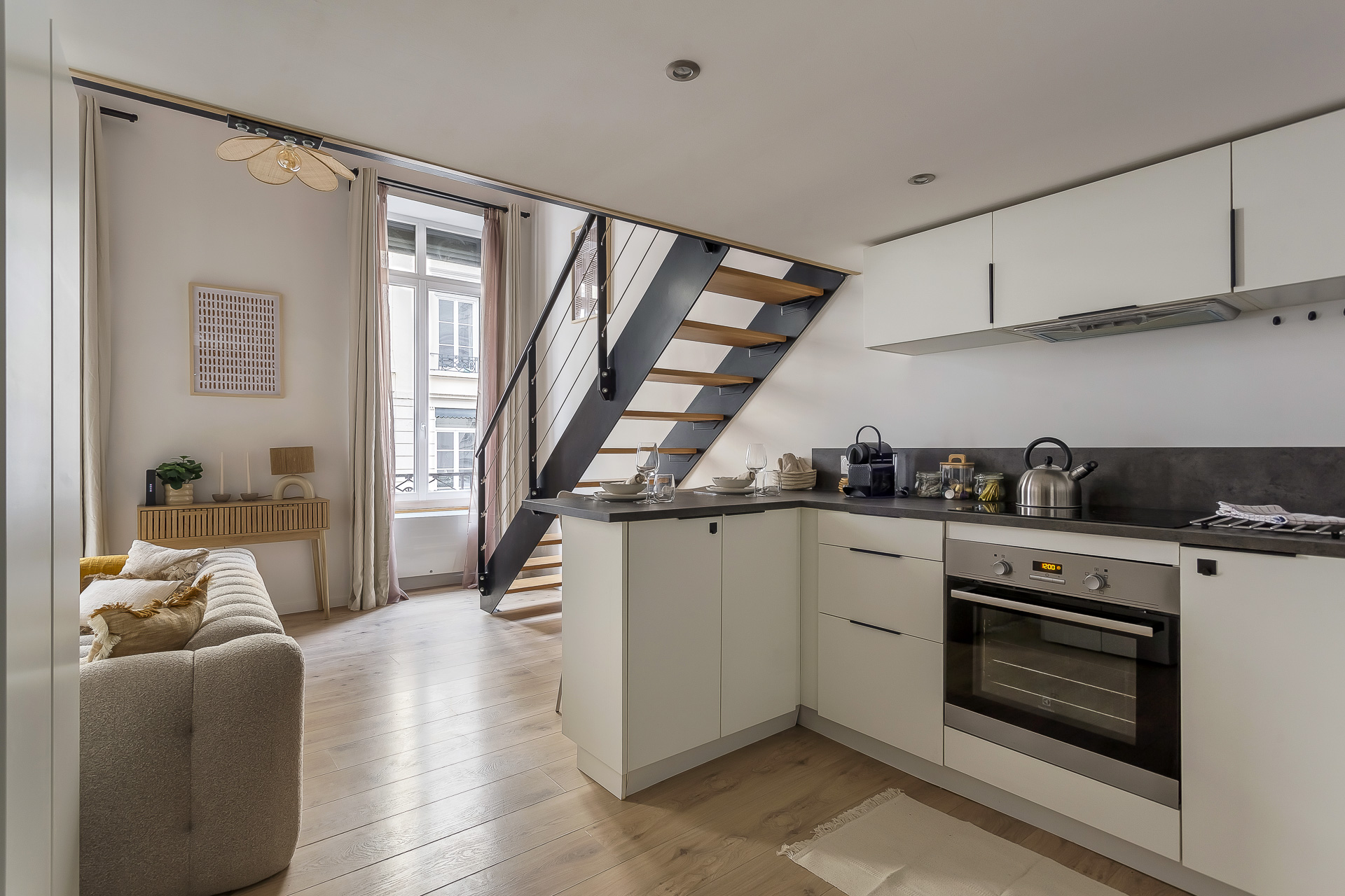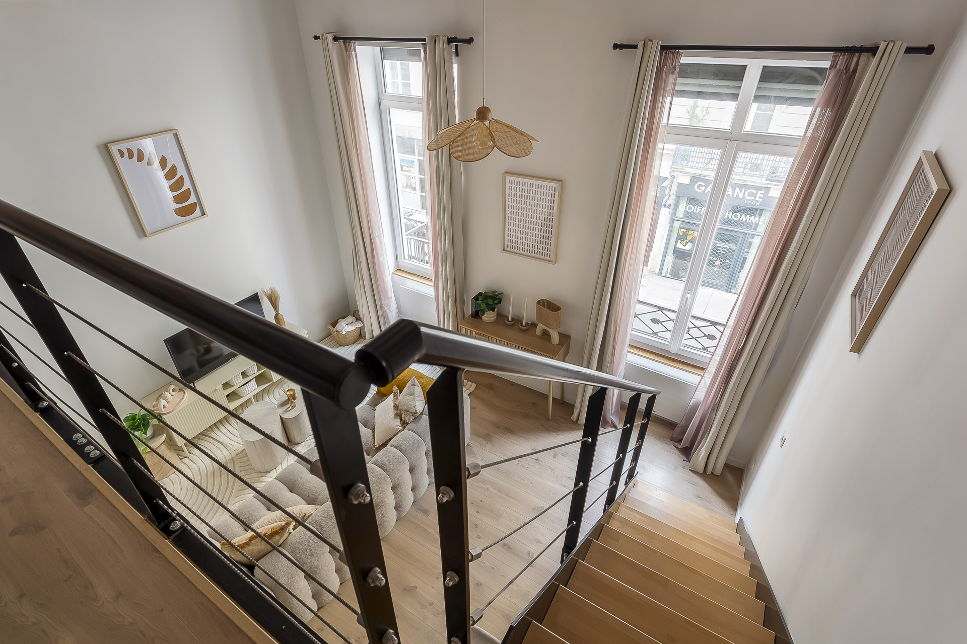 Entièrement rénové, au 1ᵉʳ étage avec ascenseur, il combine esprit contemporain, mezzanine cosy et emplacement central à quelques minutes à pied de la Presqu’île.