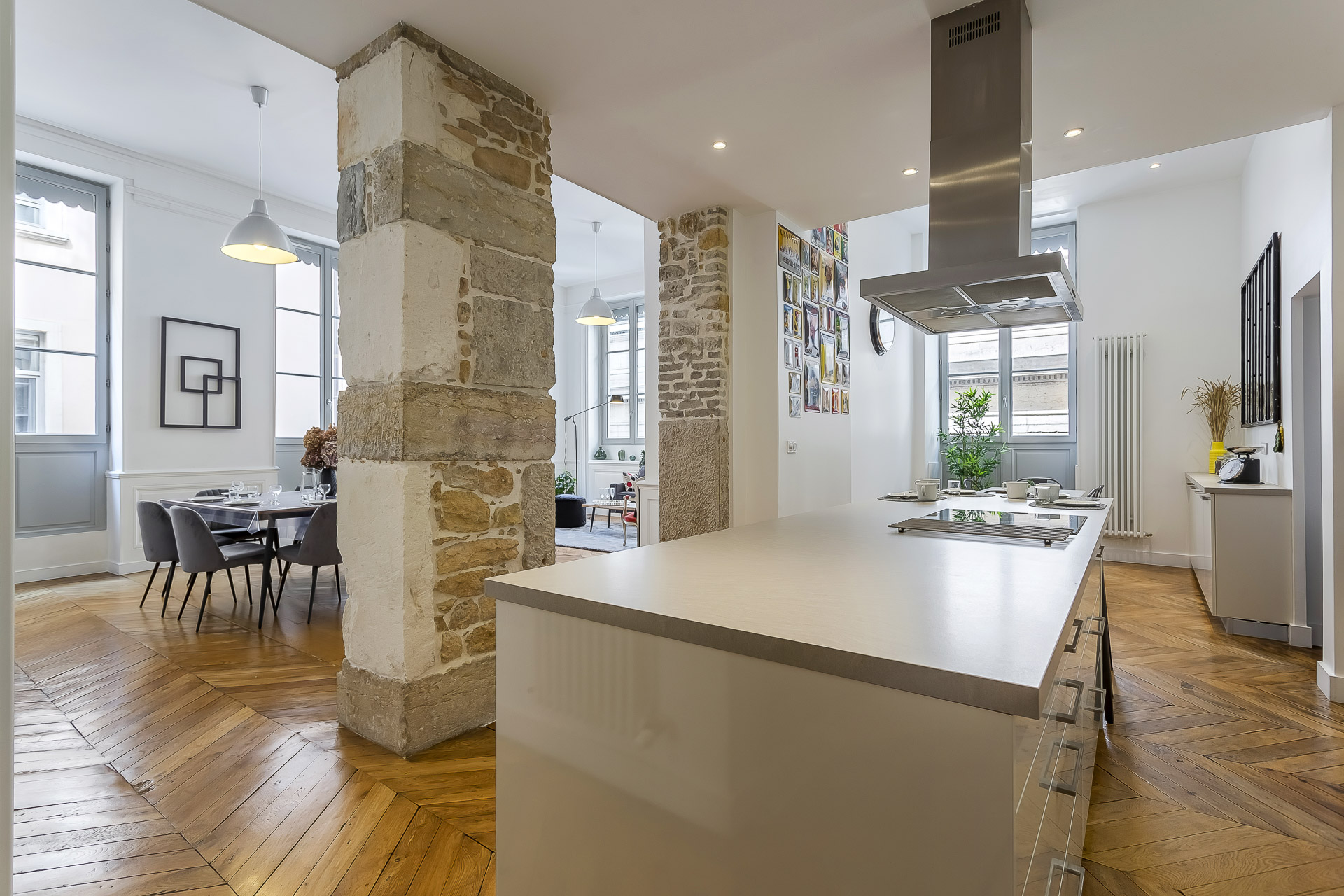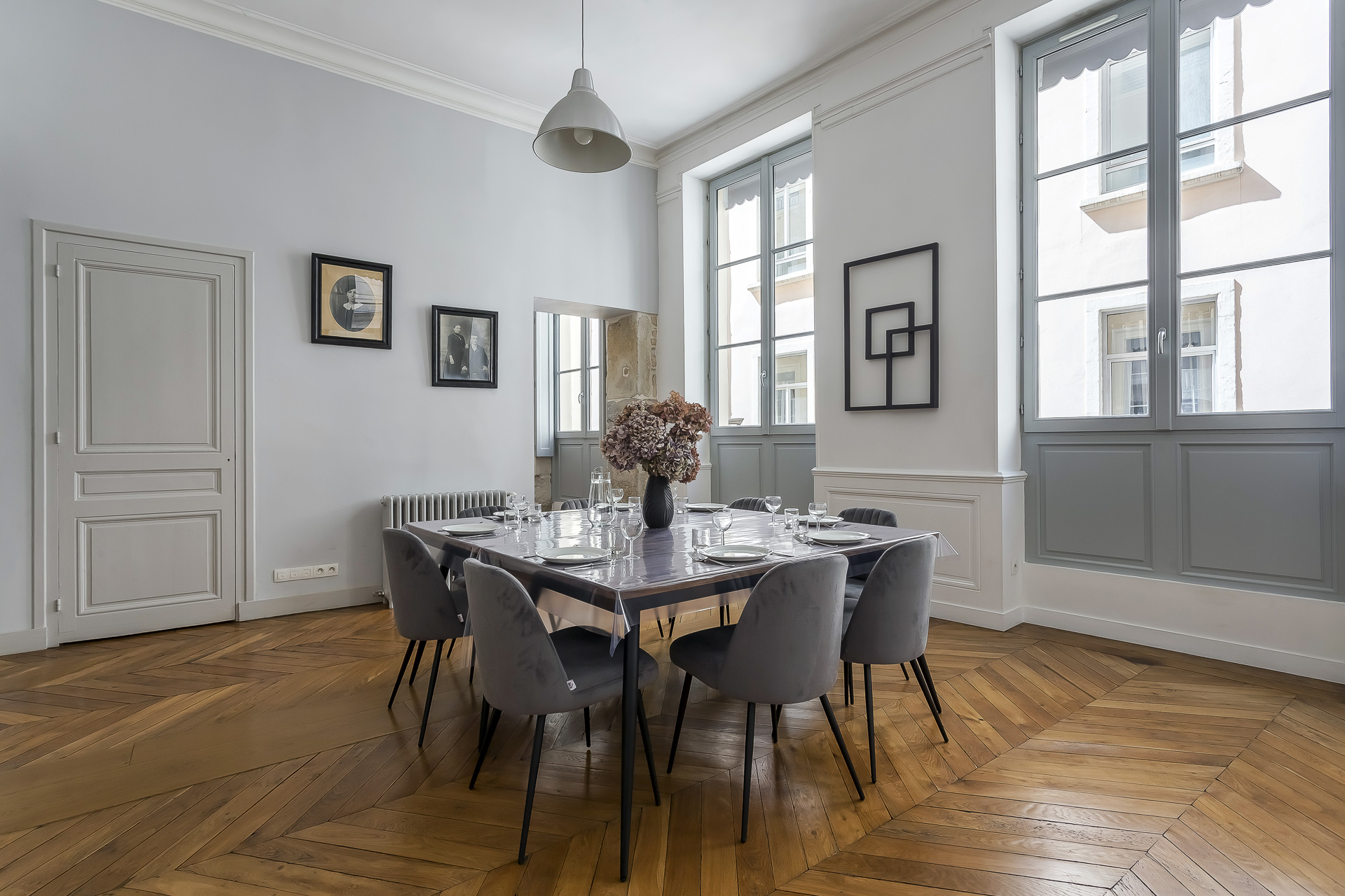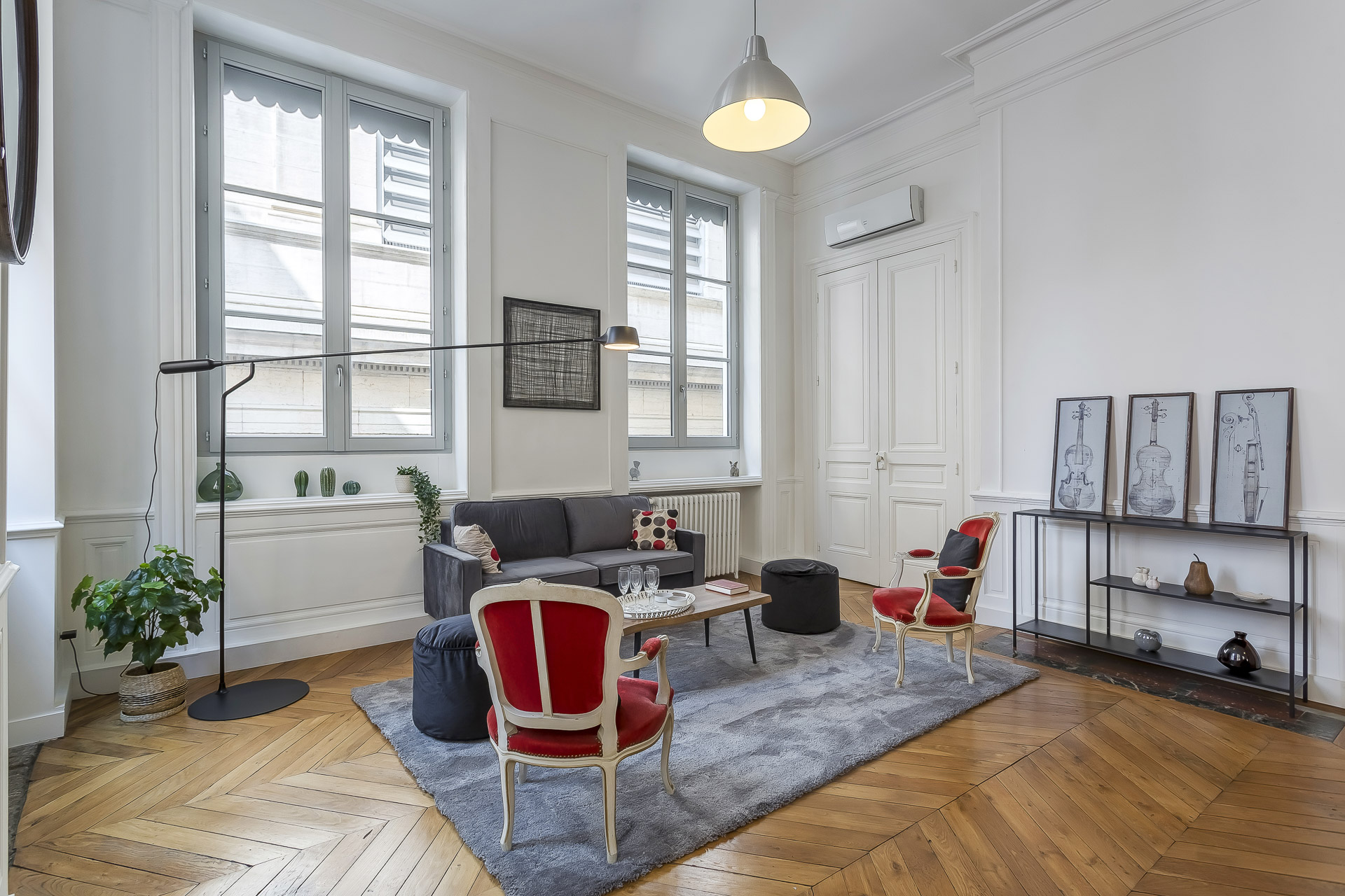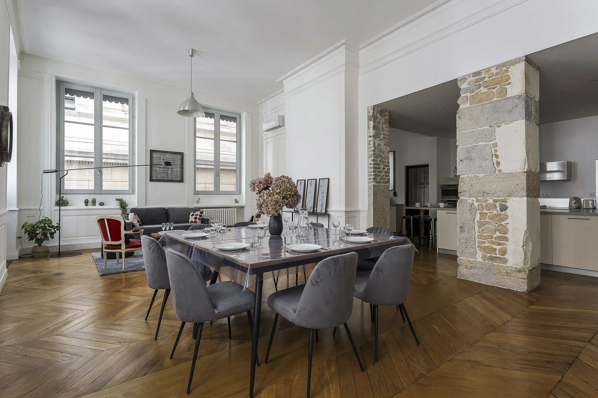 - Architecture Traditionnelle et Élégante : Niché au cœur du quartier Lyon 1, cet appartement en location courte durée mélange avec grâce l’architecture traditionnelle à une décoration moderne et raffinée.