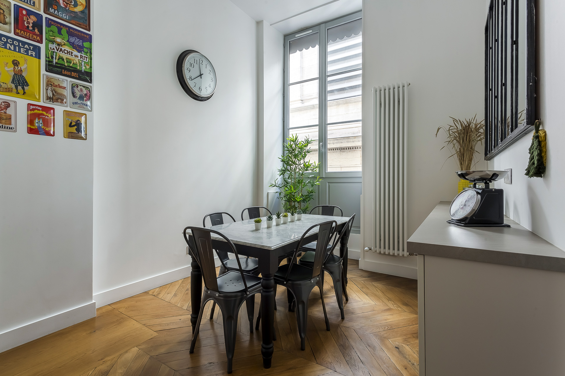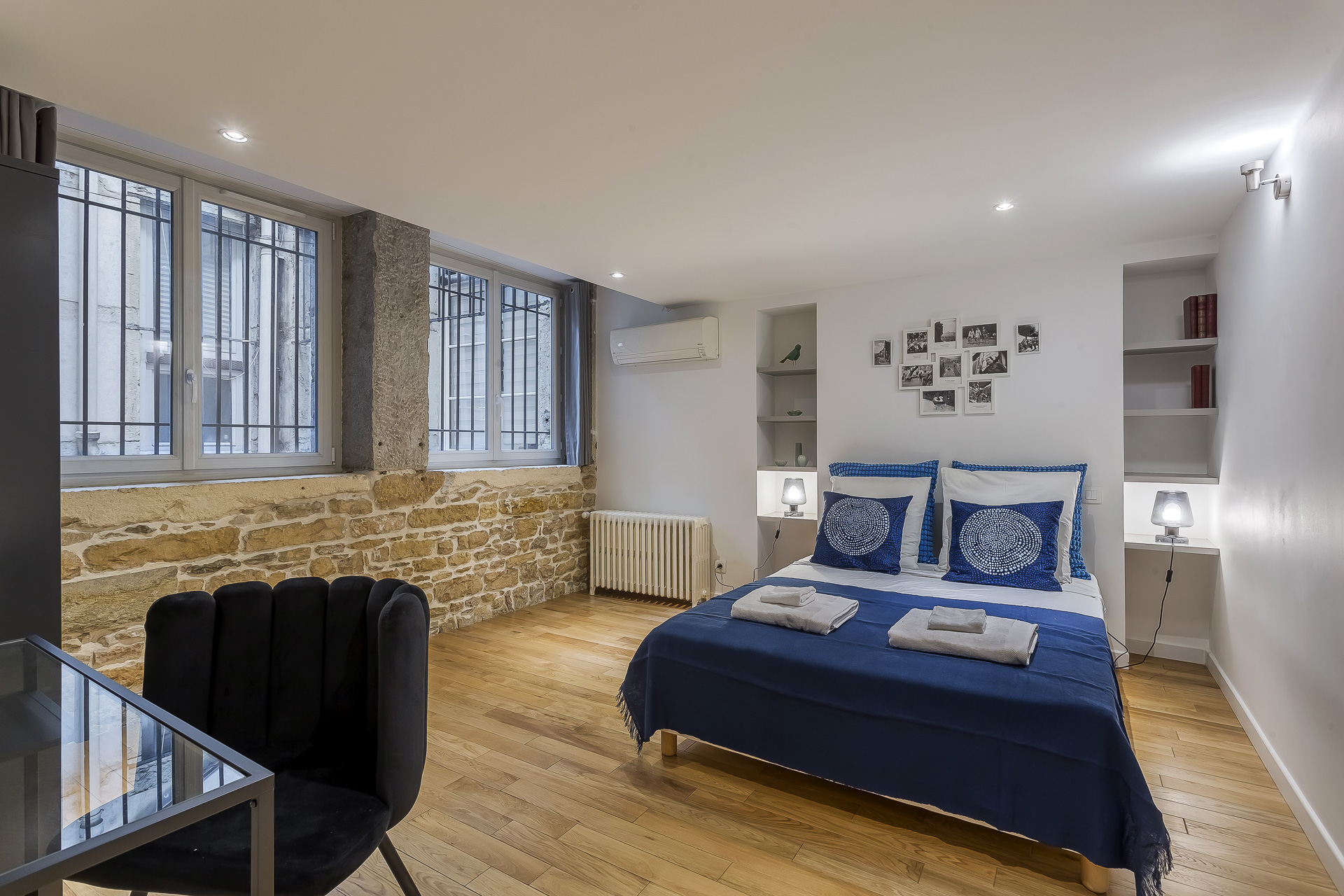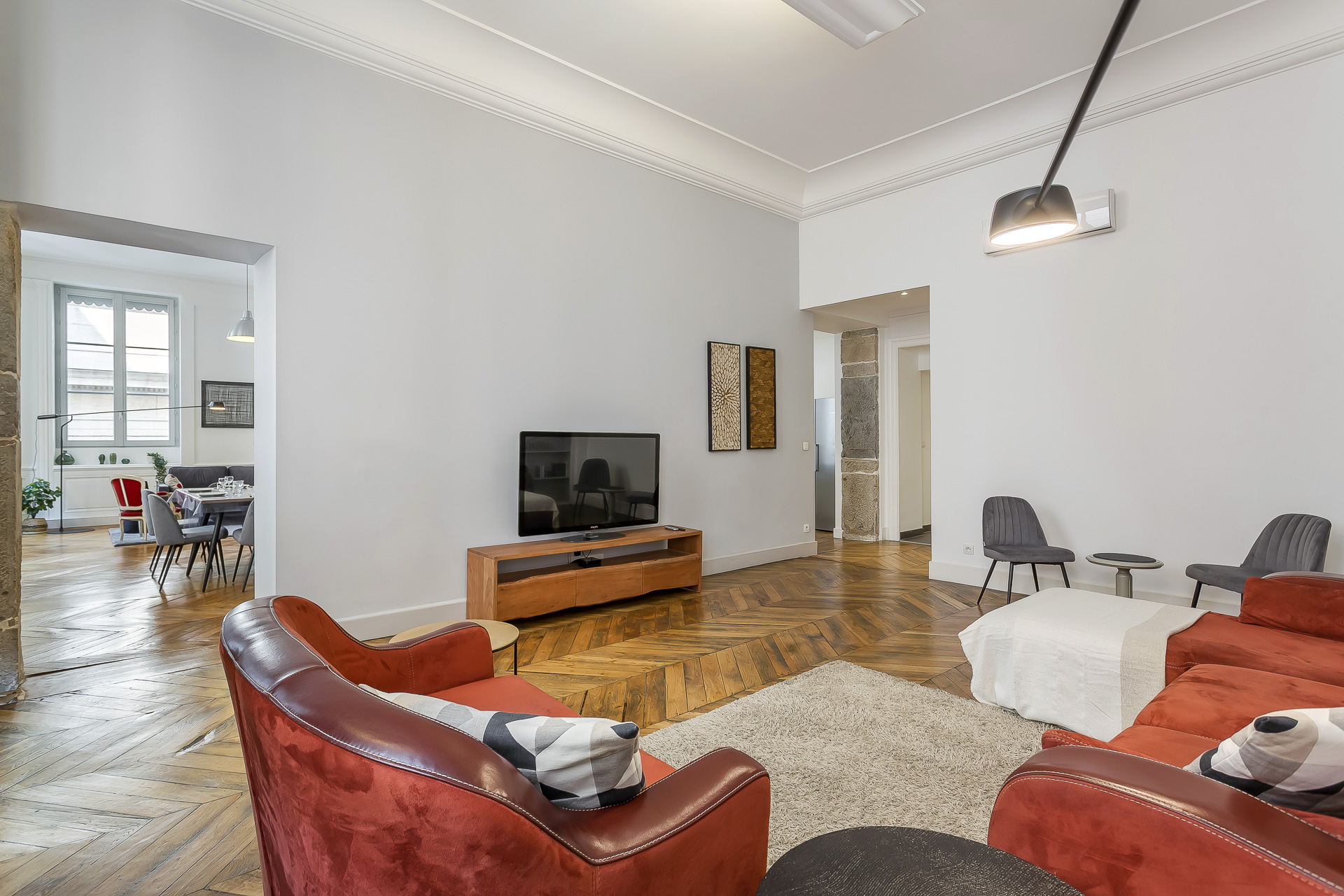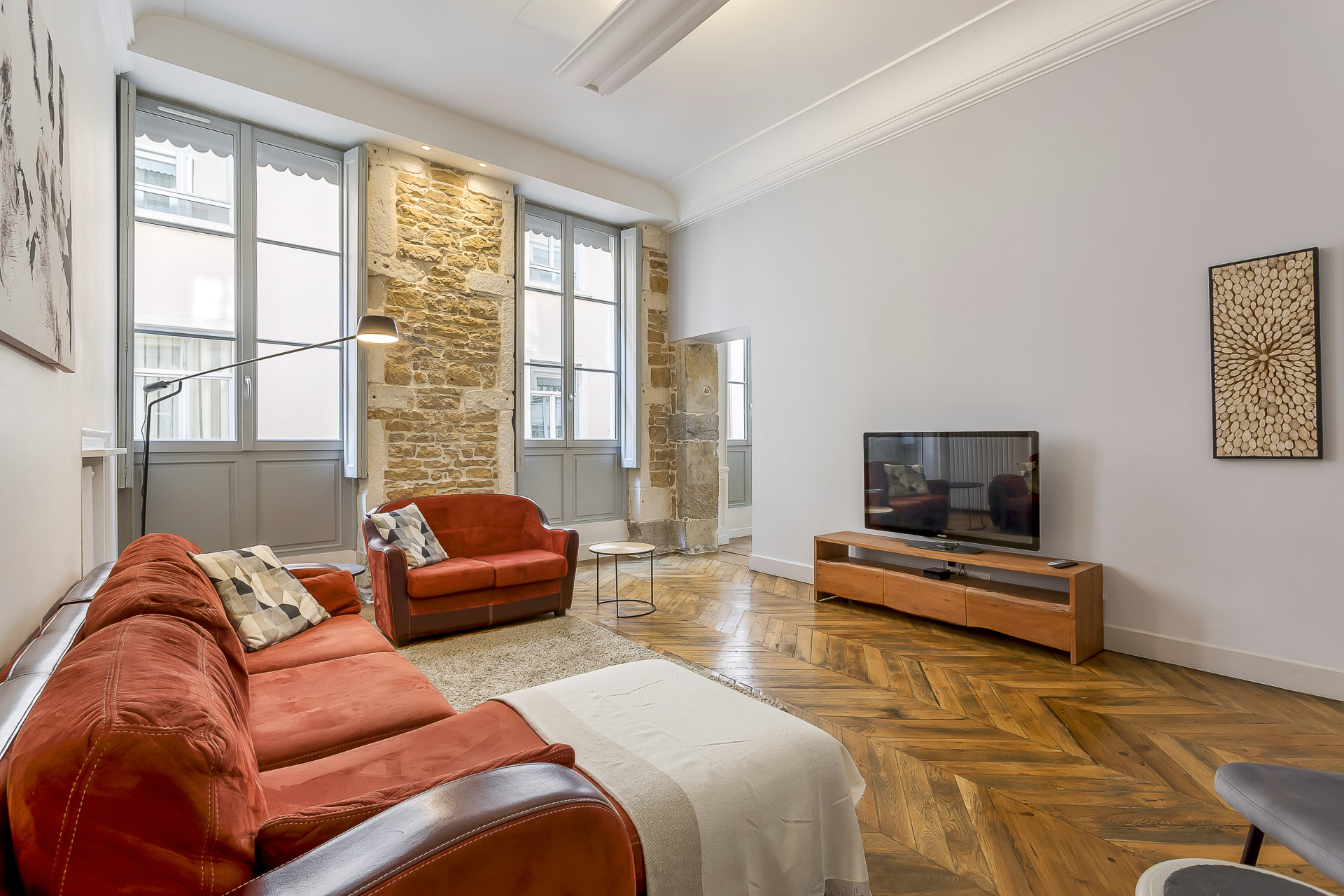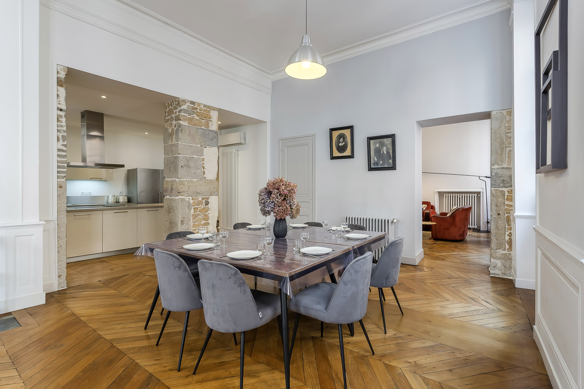 - Architecture Traditionnelle et Élégante : Niché au cœur du quartier Lyon 1, cet appartement en location courte durée mélange avec grâce l’architecture traditionnelle à une décoration moderne et raffinée.
