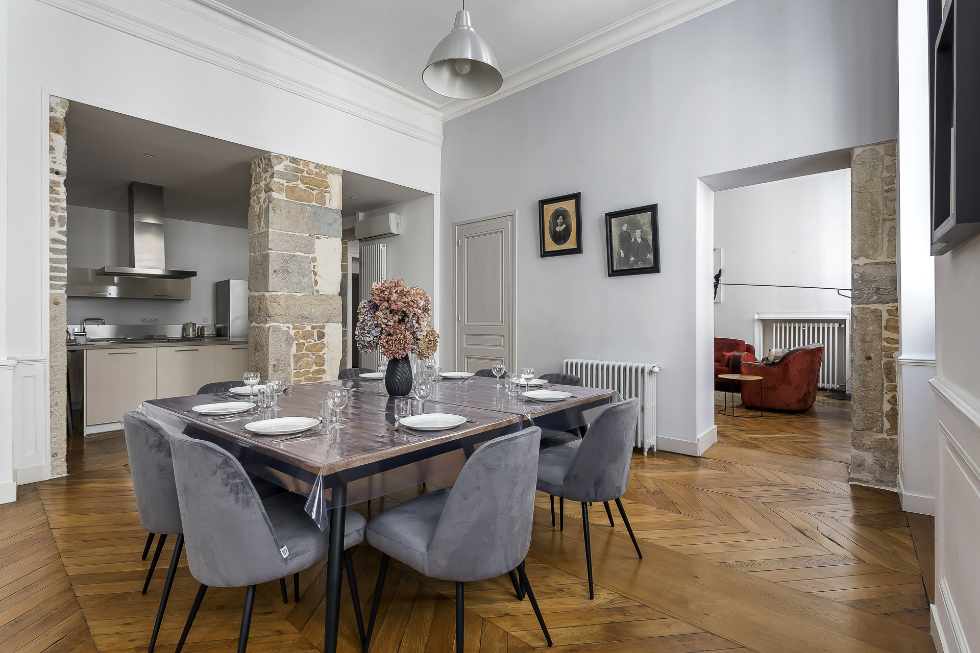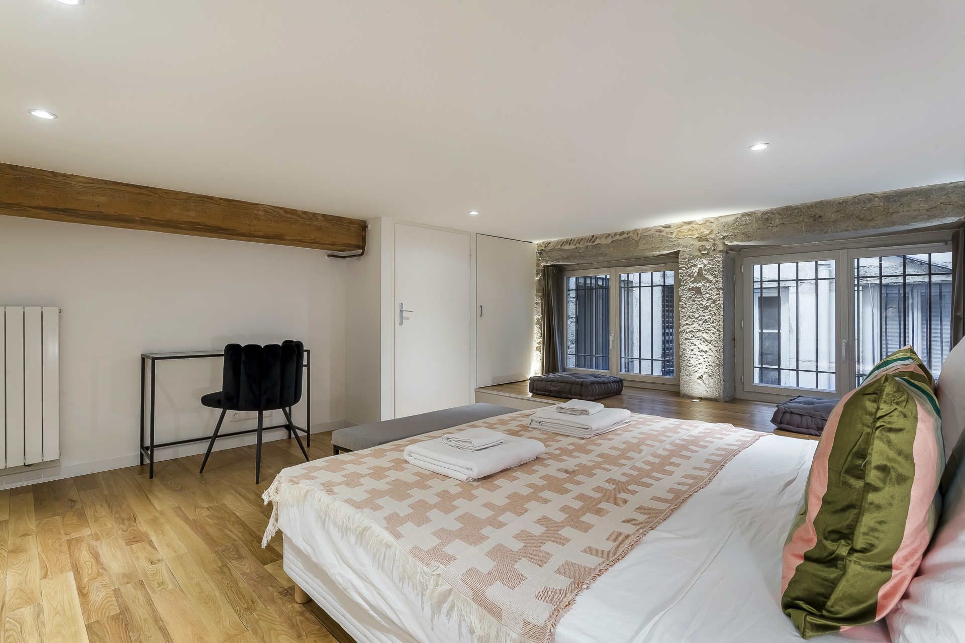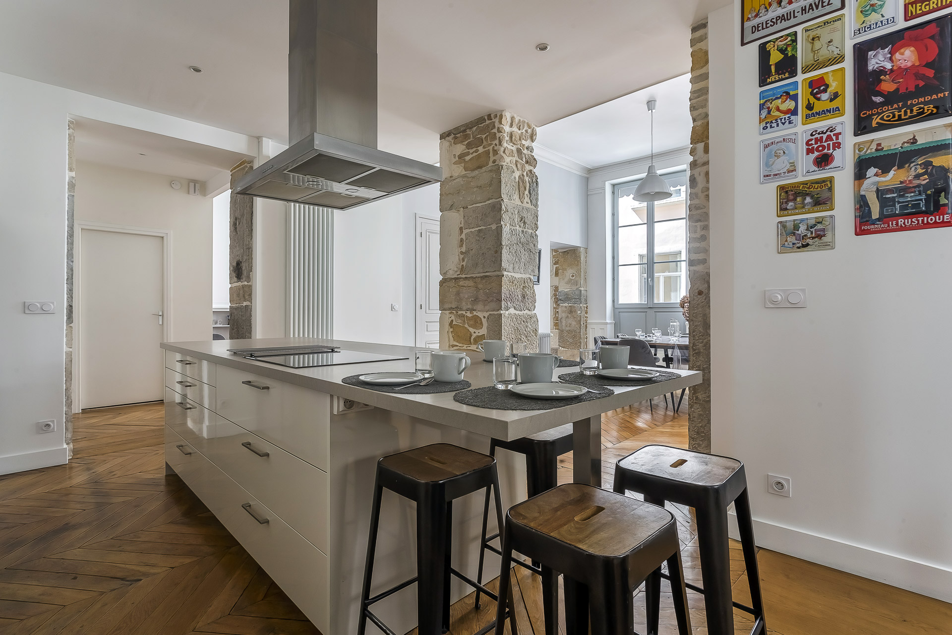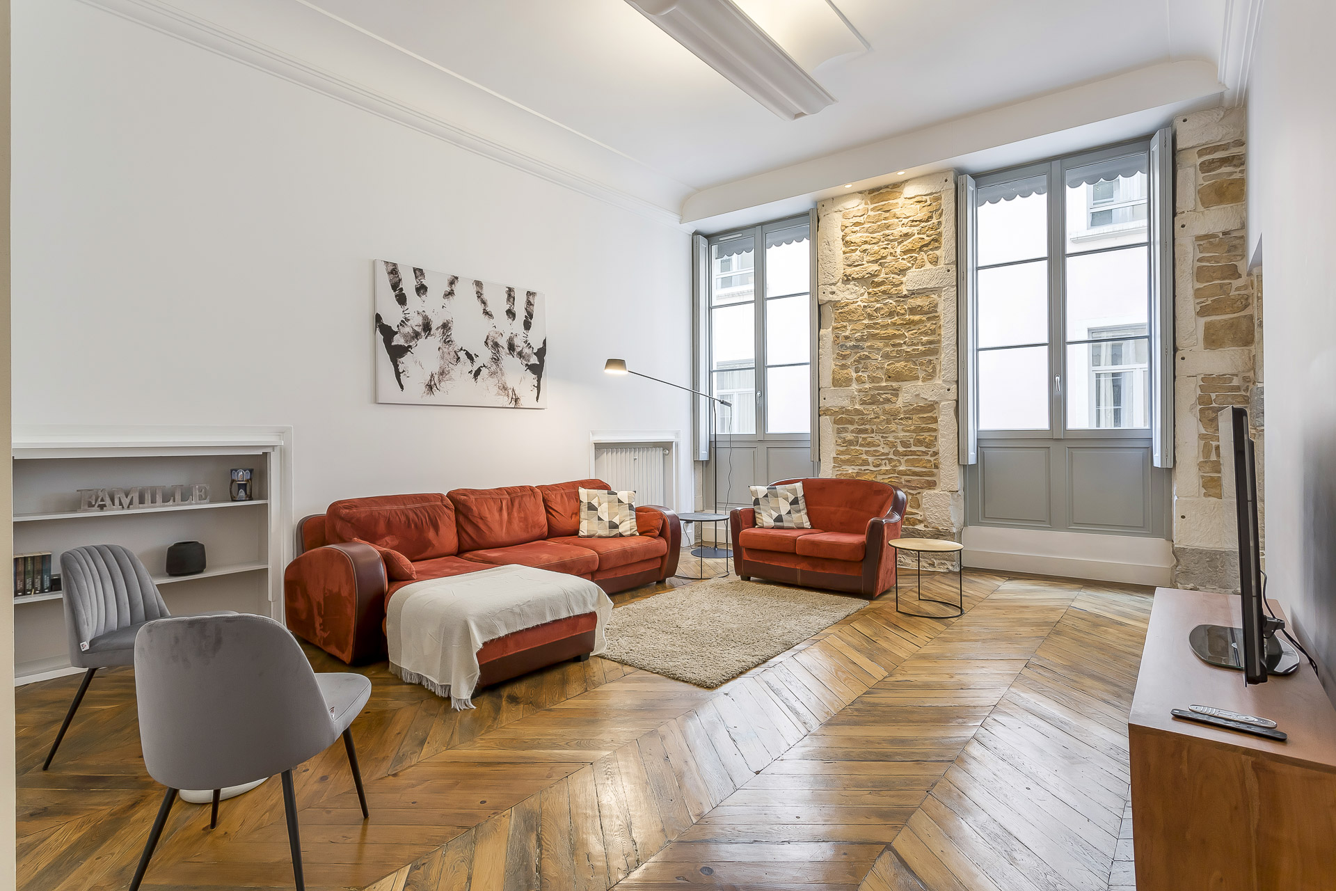 - Architecture Traditionnelle et Élégante : Niché au cœur du quartier Lyon 1, cet appartement en location courte durée mélange avec grâce l’architecture traditionnelle à une décoration moderne et raffinée.