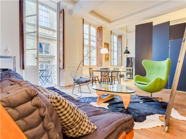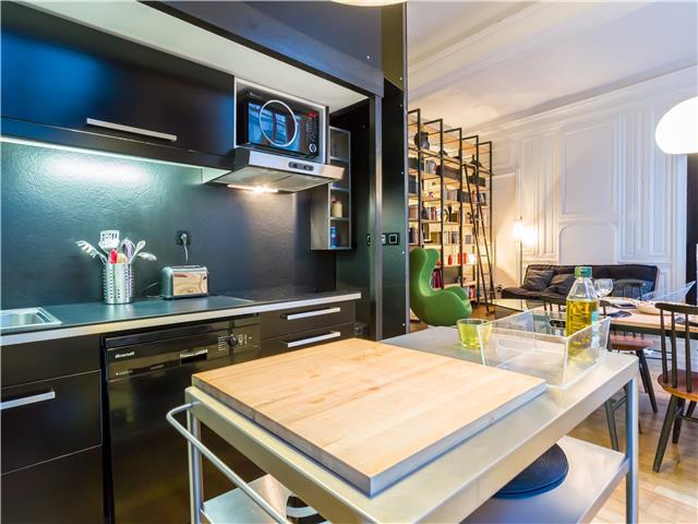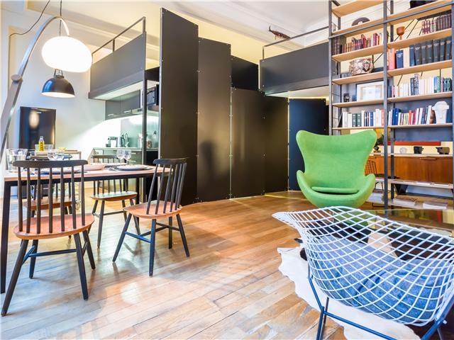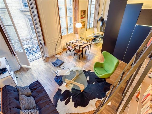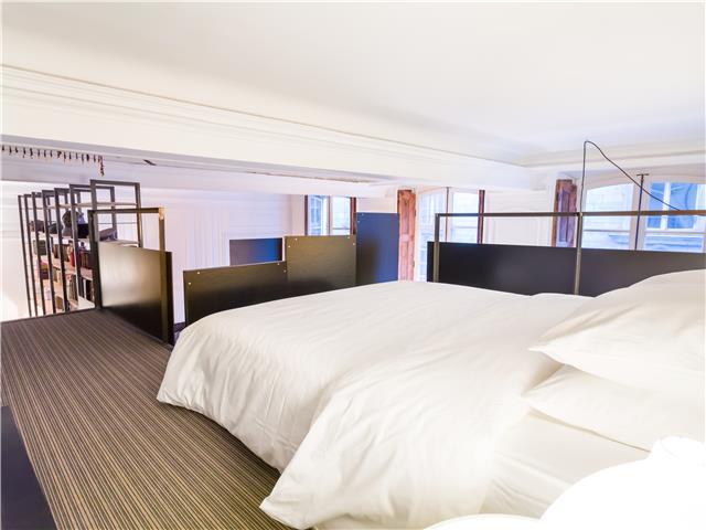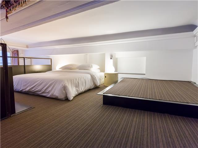 Ce loft meublé de 60 m² avec balcon est composé d’une très agréable pièce à vivre pourvue d’un balcon meublé, avec un salon, canapé-lit, table de salle à manger, une cuisine américaine entièrement équipée (four, réfrigérateur/congélateur, micro-ondes, lave-vaisselle), une chambre en mezzanine avec un lit double, une salle de bains avec douche et un WC, un grand dressing avec machine à laver le linge (fer et table à repasser).