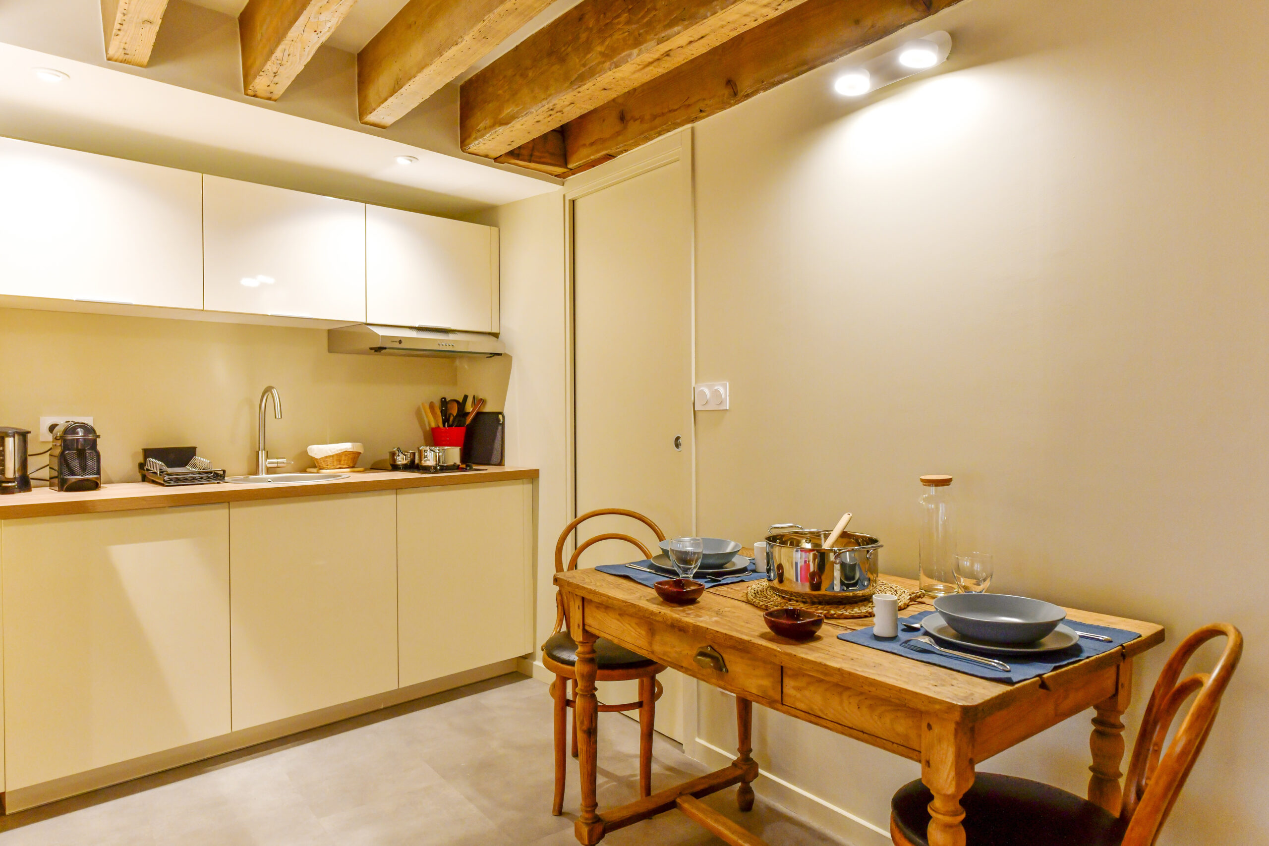 Ce studio lumineux peut accueillir jusqu’à 2 personnes pour un séjour de moyenne durée, dans un cadre simple, confortable et central.