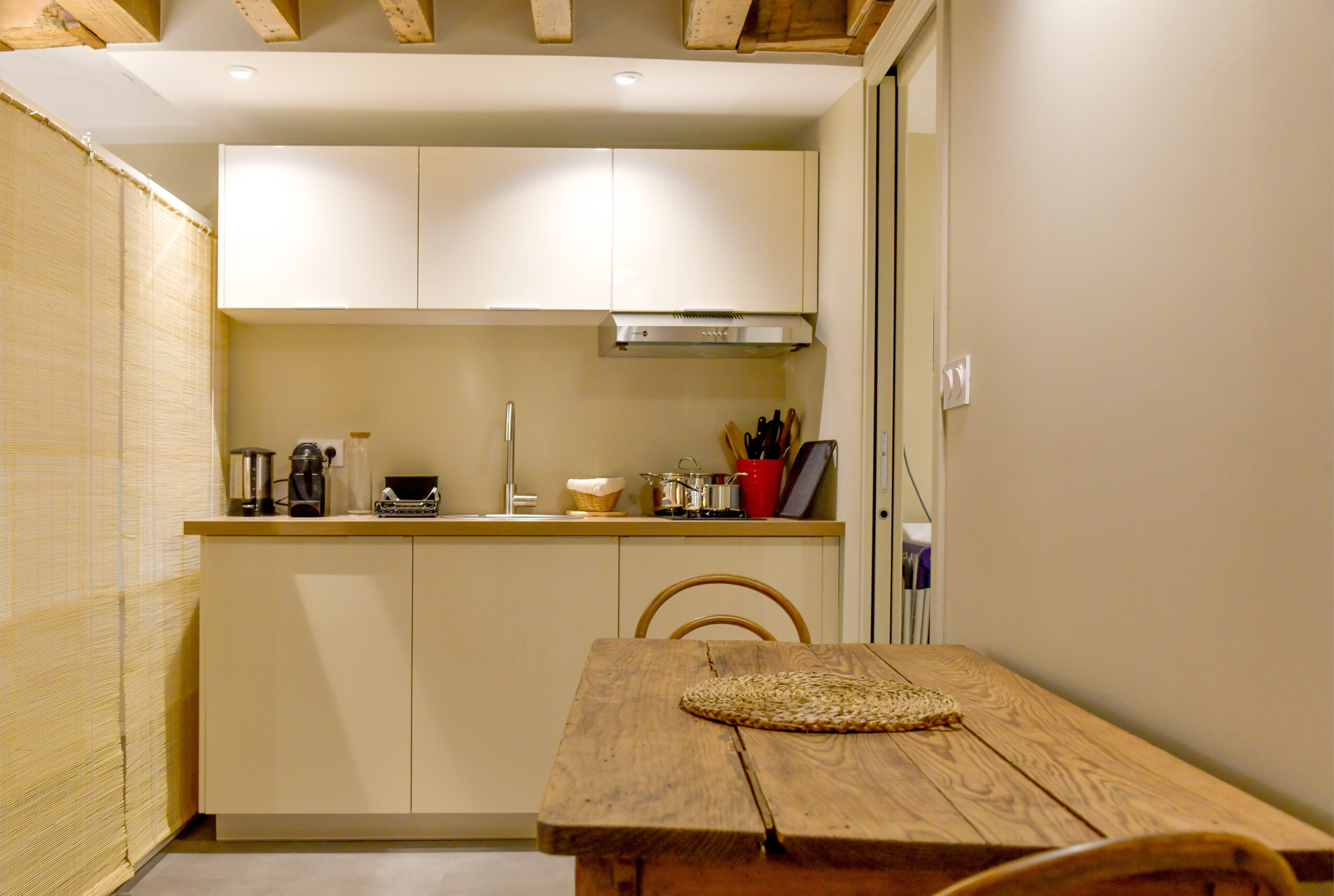 - Pièce de vie fonctionnelle avec coin repas et cuisine ouverte