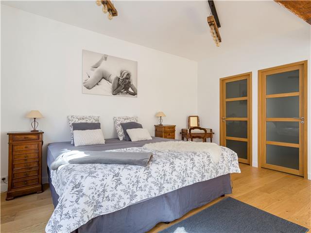Côté nuit, vous trouverez une chambre spacieuse et au calme avec un lit double de 2 mètres, une salle de bains avec douche, des WC séparés, ainsi qu’un espace buanderie avec machine à laver, fer et table à repasser.