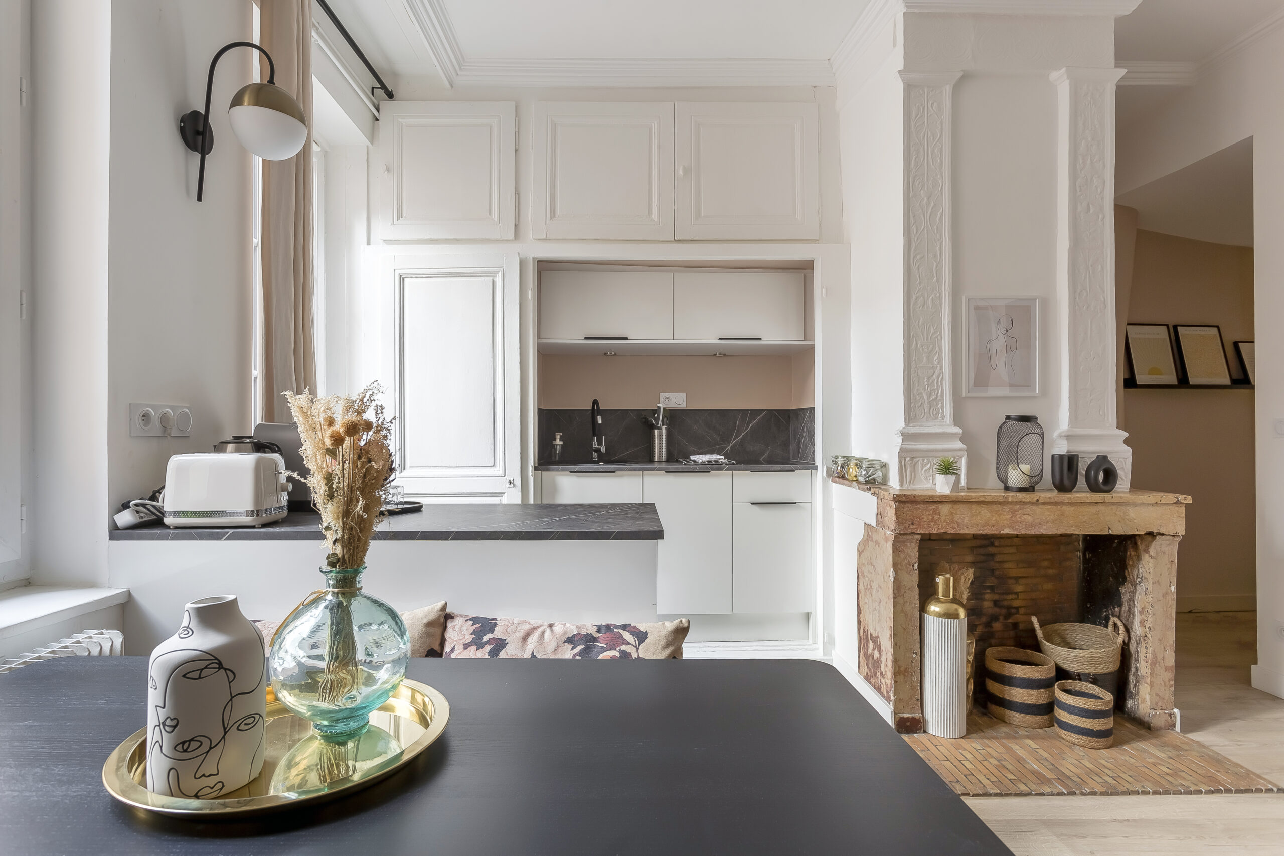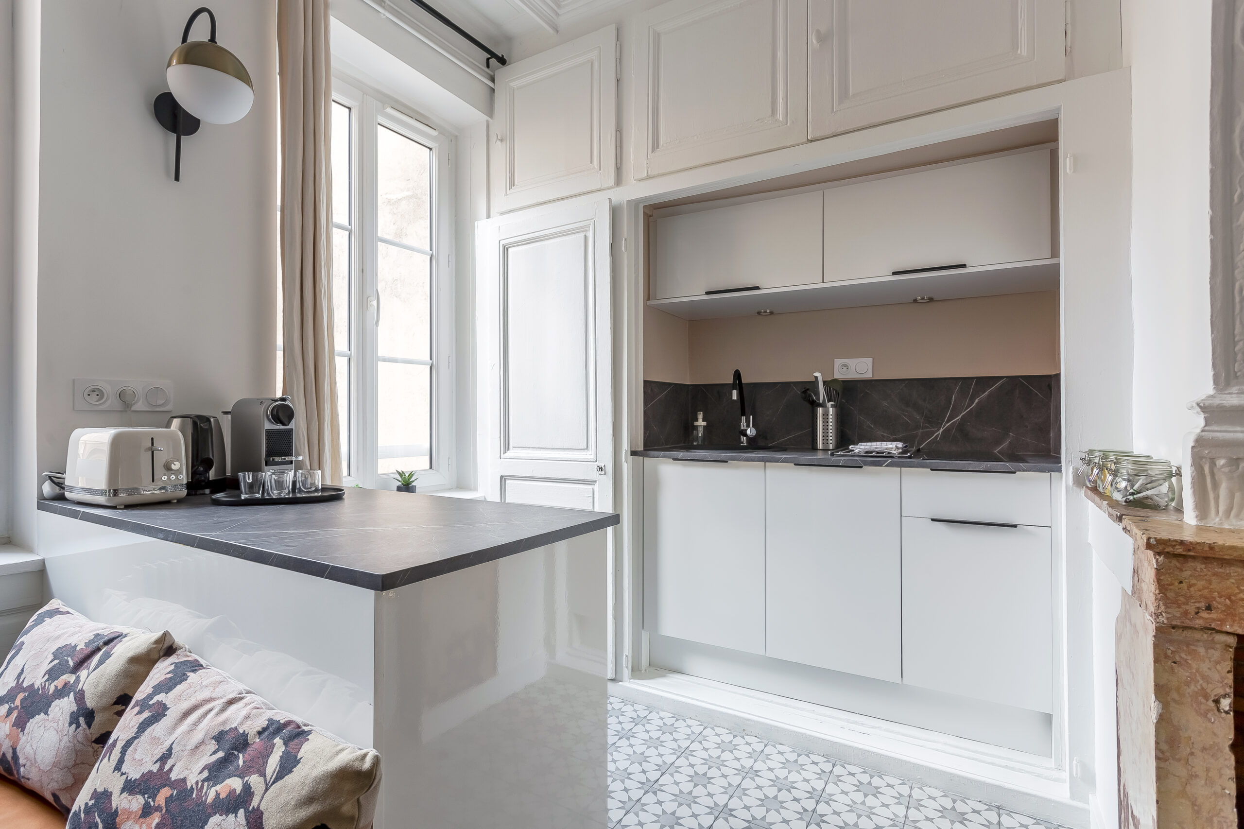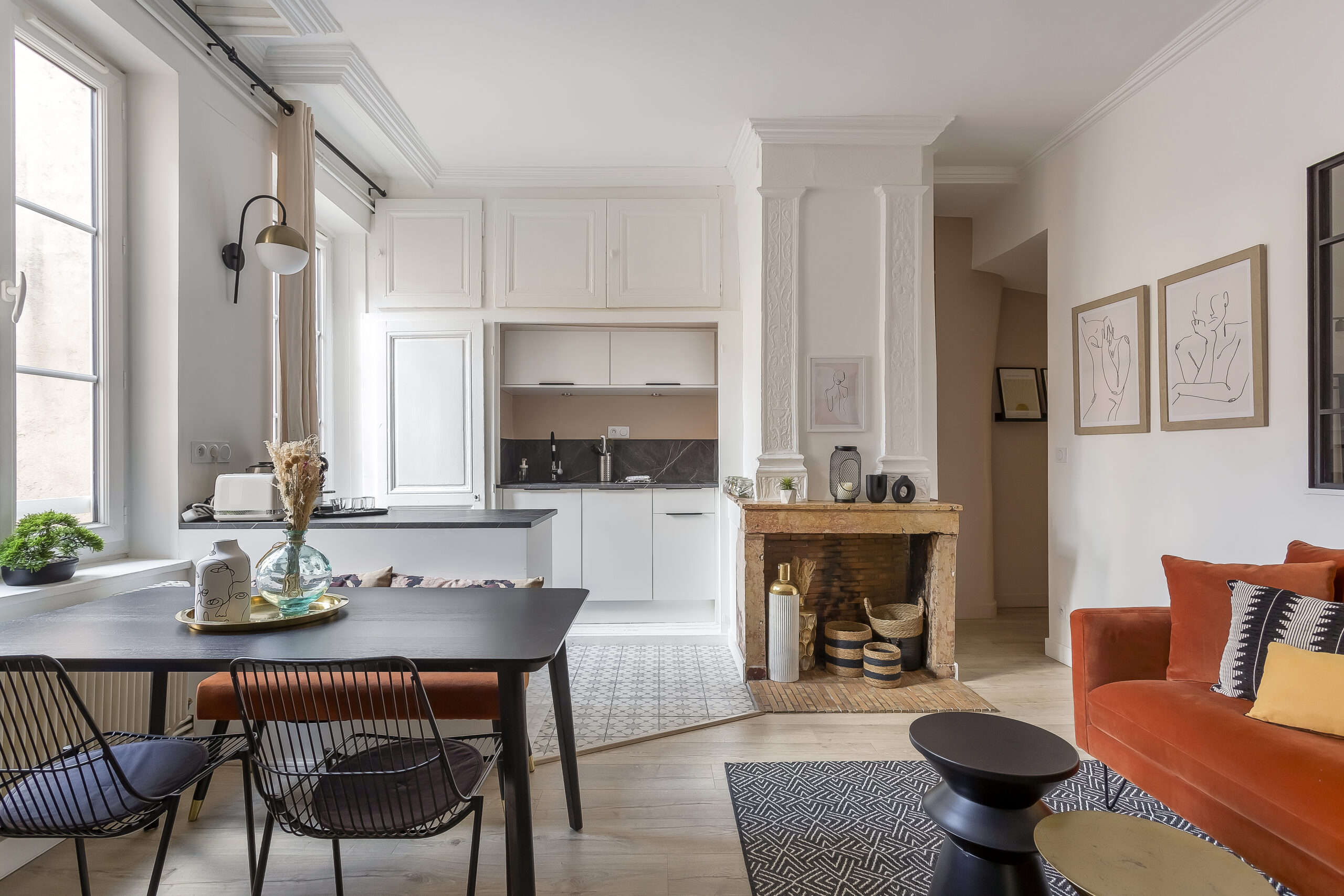 Situé au 4ᵉ étage sans ascenseur, cet appartement lumineux et calme allie le cachet de l’ancien à une rénovation moderne et fonctionnelle.