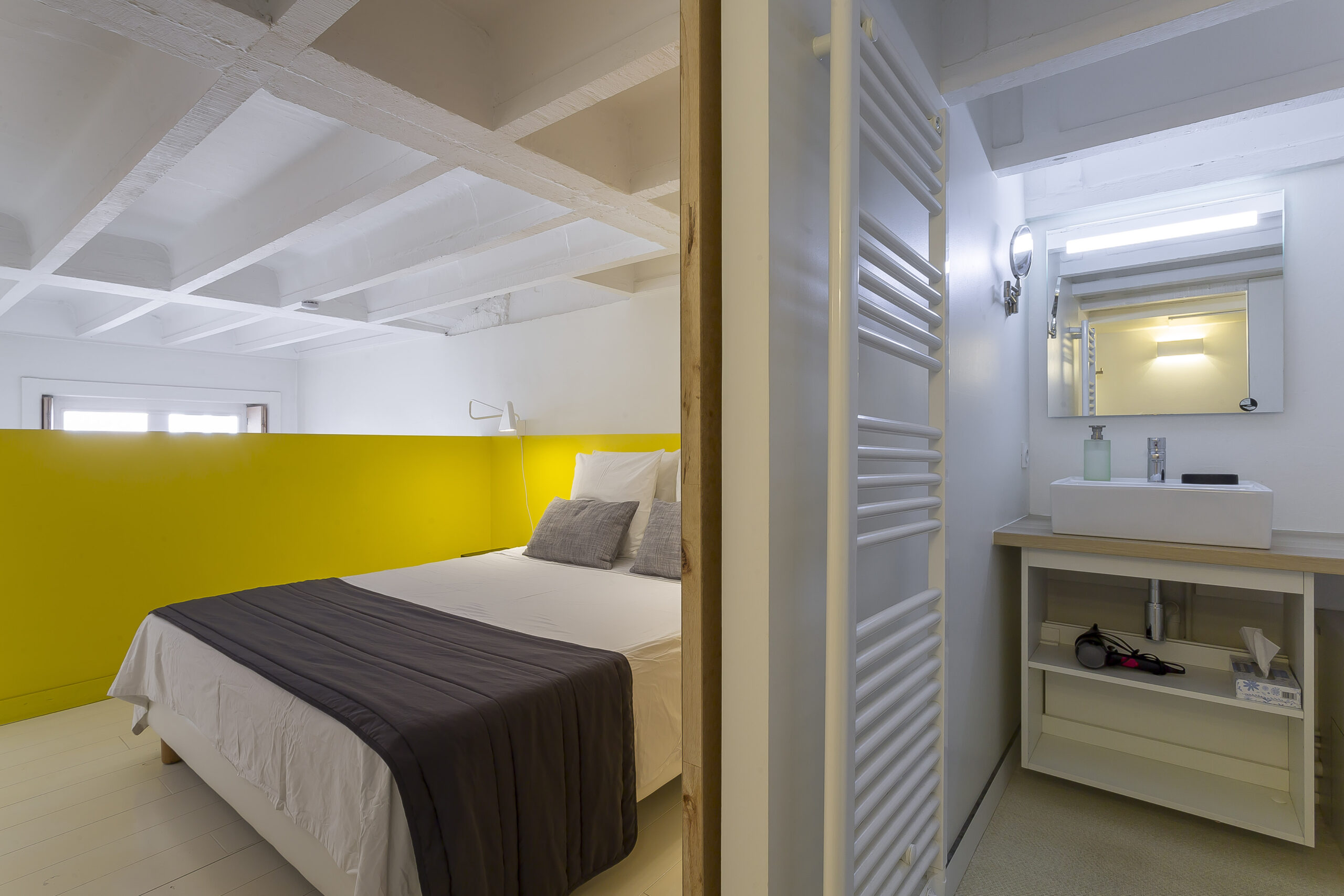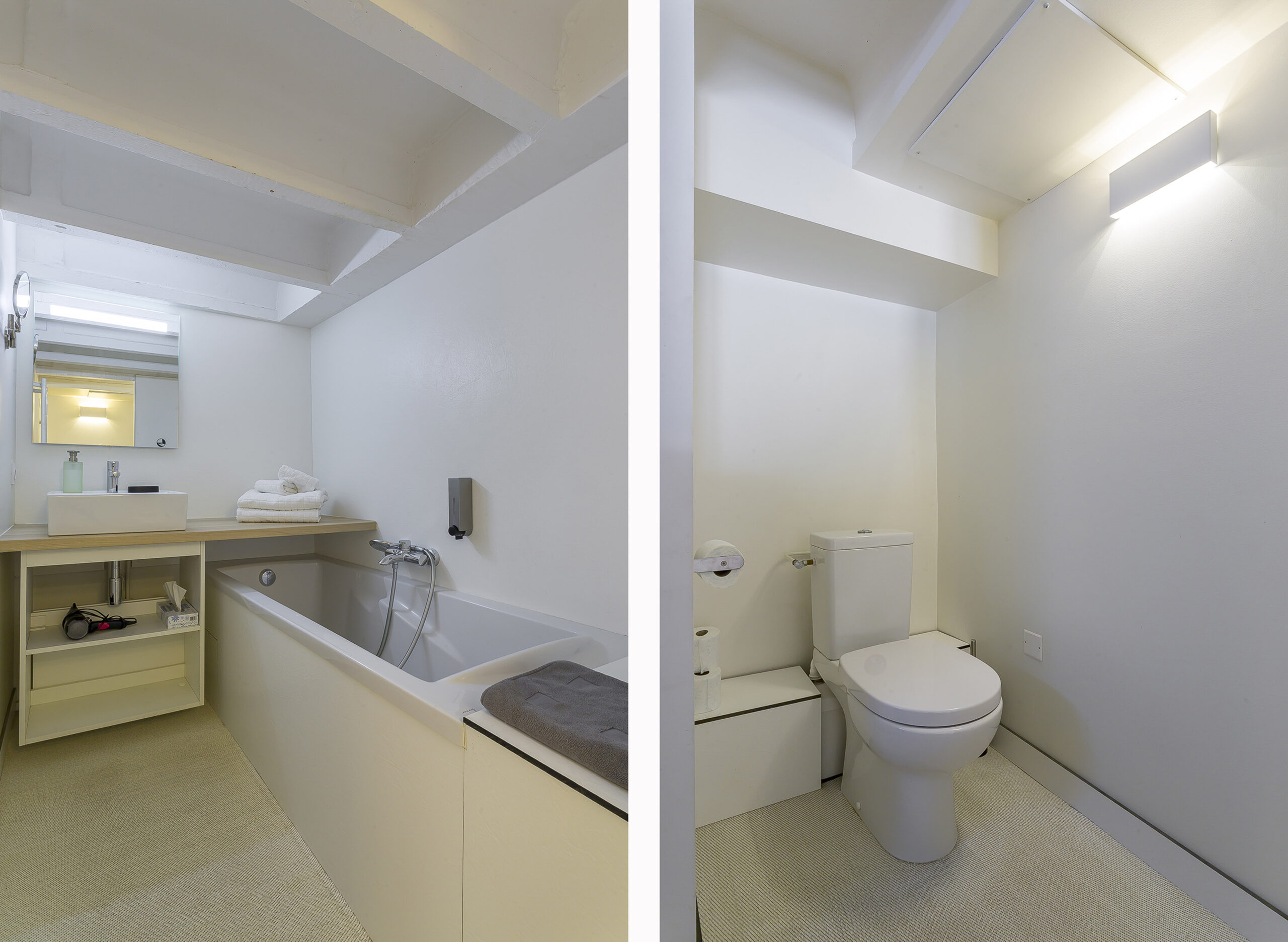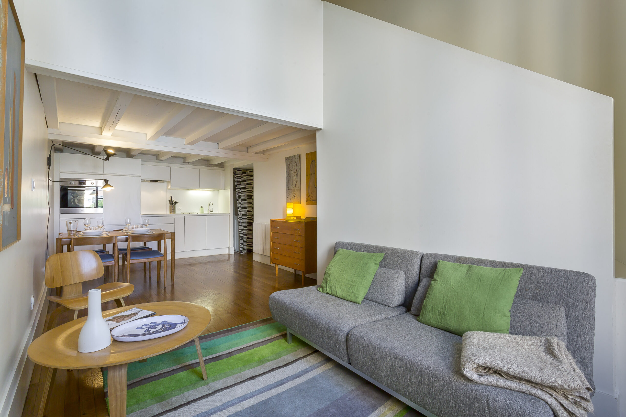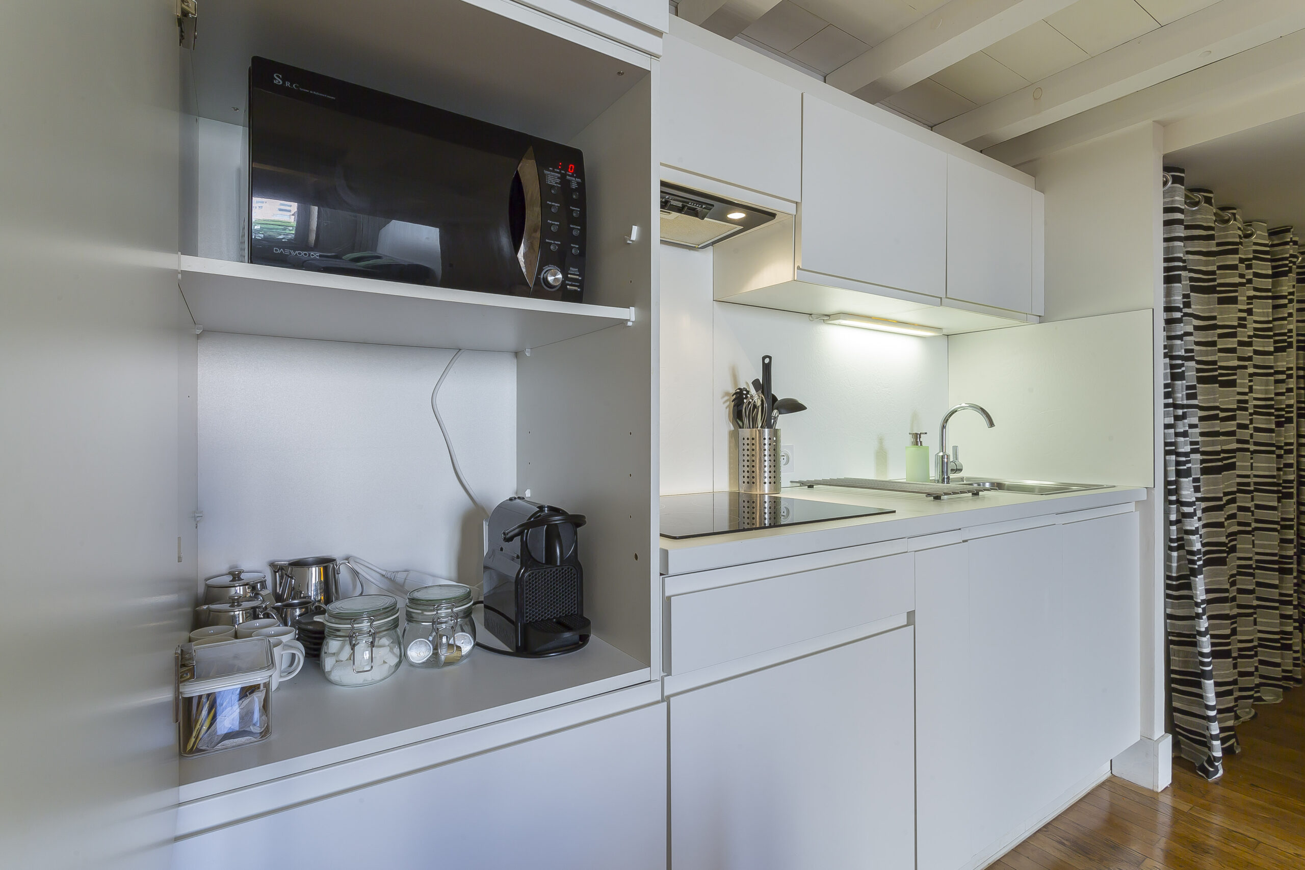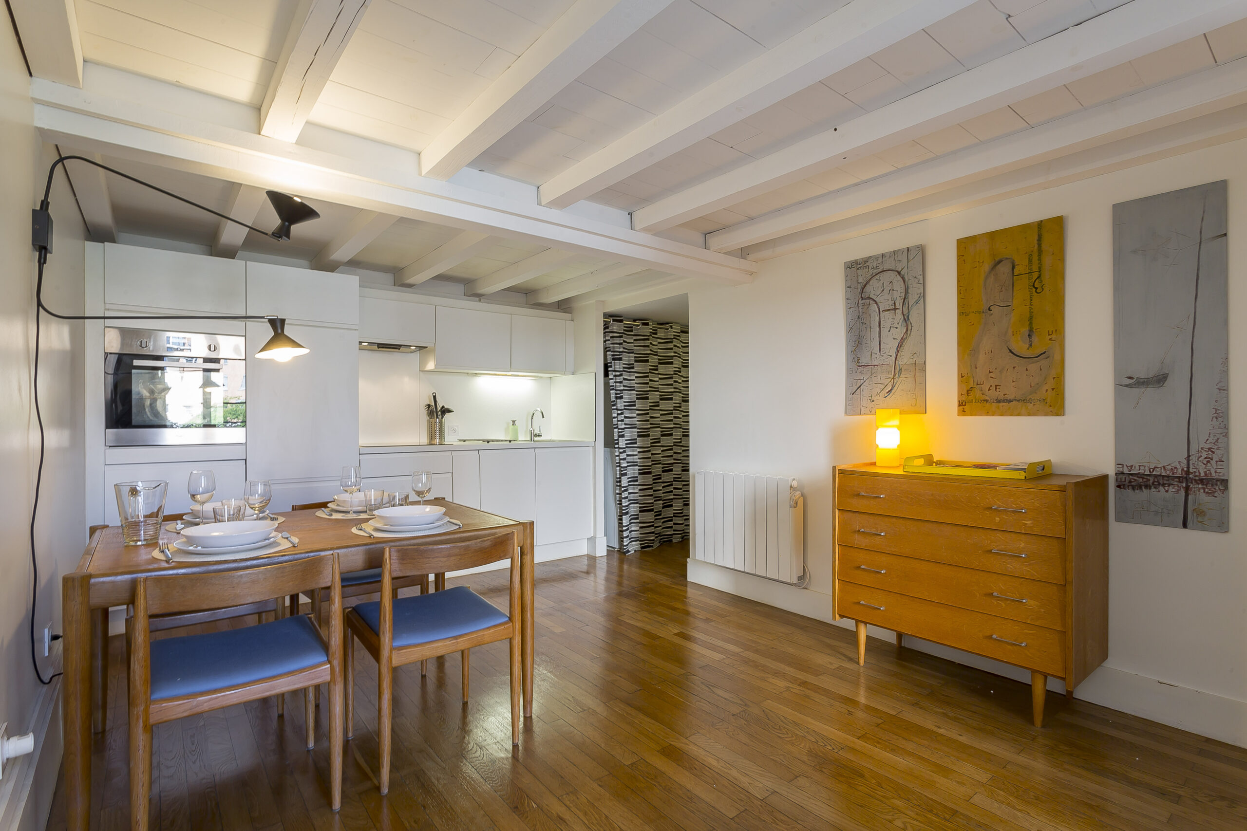 Cet appartement se compose d’une agréable pièce à vivre lumineuse avec une cuisine américaine entièrement équipée ainsi qu’une chambre en mezzanine avec un lit double et une salle de bain avec baignoire et wc.