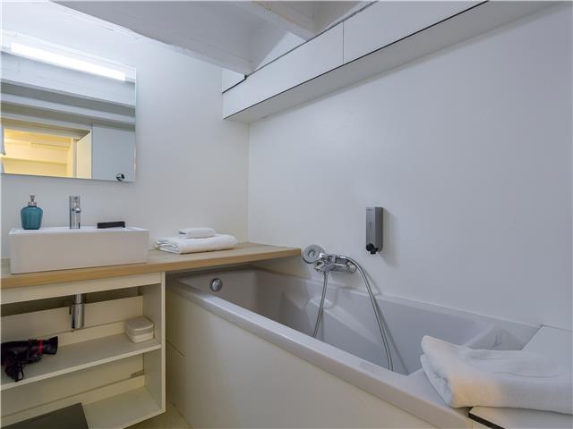 - Une salle de bain avec baignoire et WC intégrés