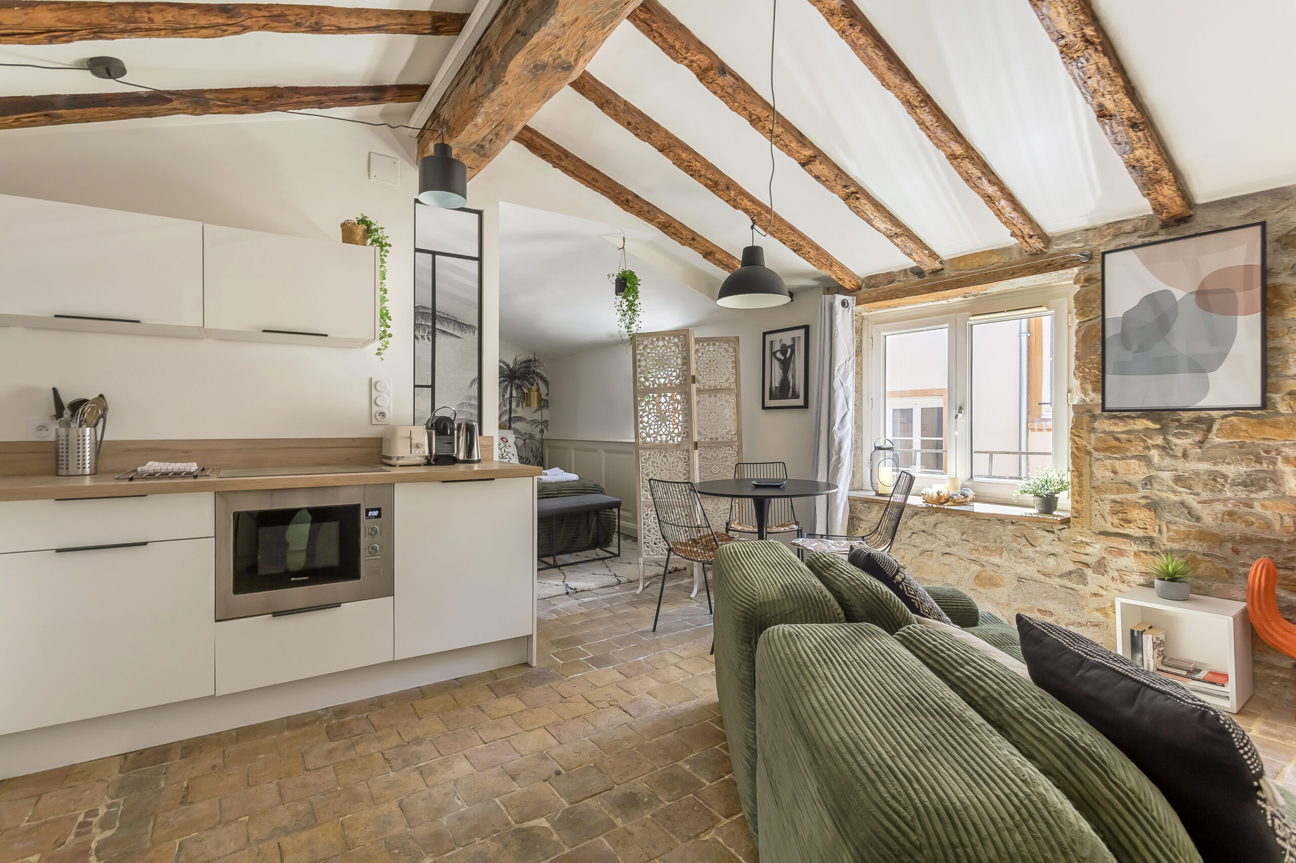 Situé en plein cœur du Vieux Lyon, rue Saint-Jean, cet appartement meublé de 33 m² vous plonge dans un environnement chargé d’histoire, au sein d’un superbe immeuble Renaissance du XVIᵉ siècle.