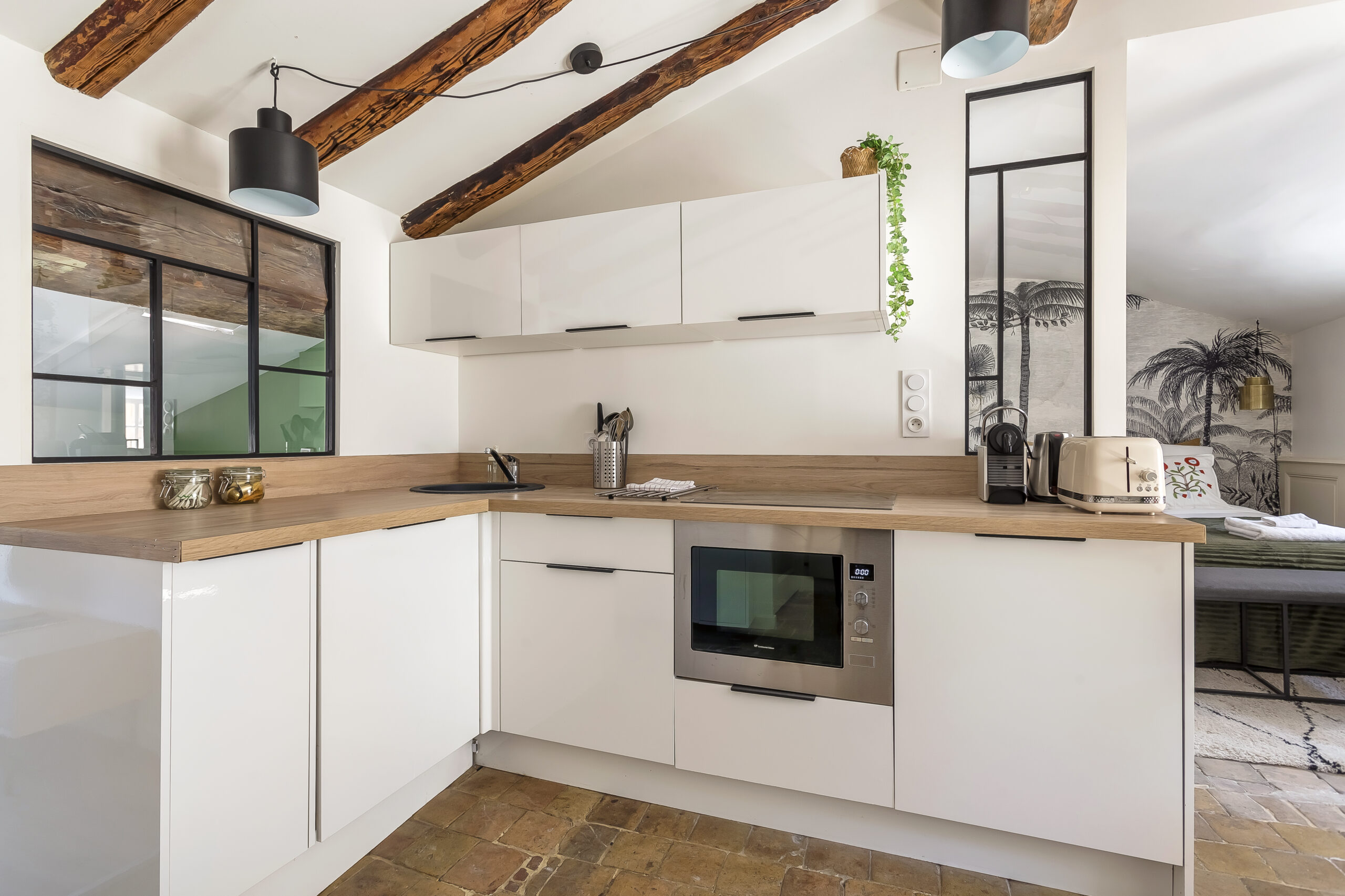 - Une cuisine ouverte, entièrement aménagée et équipée