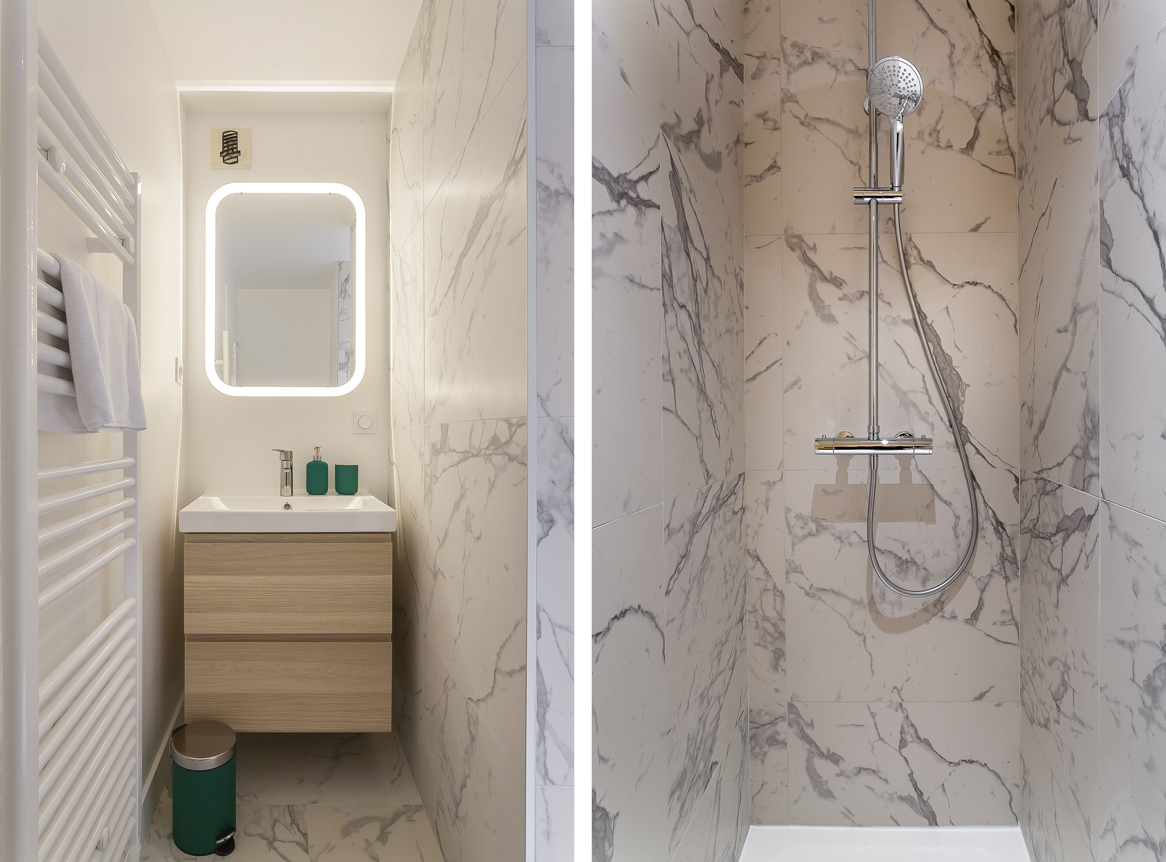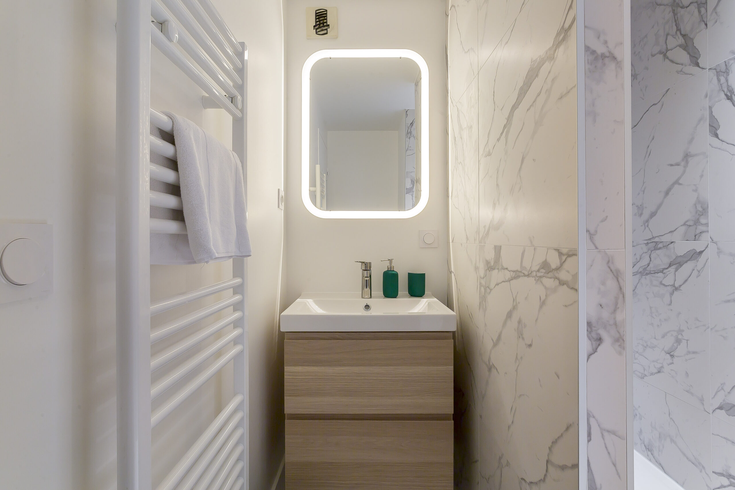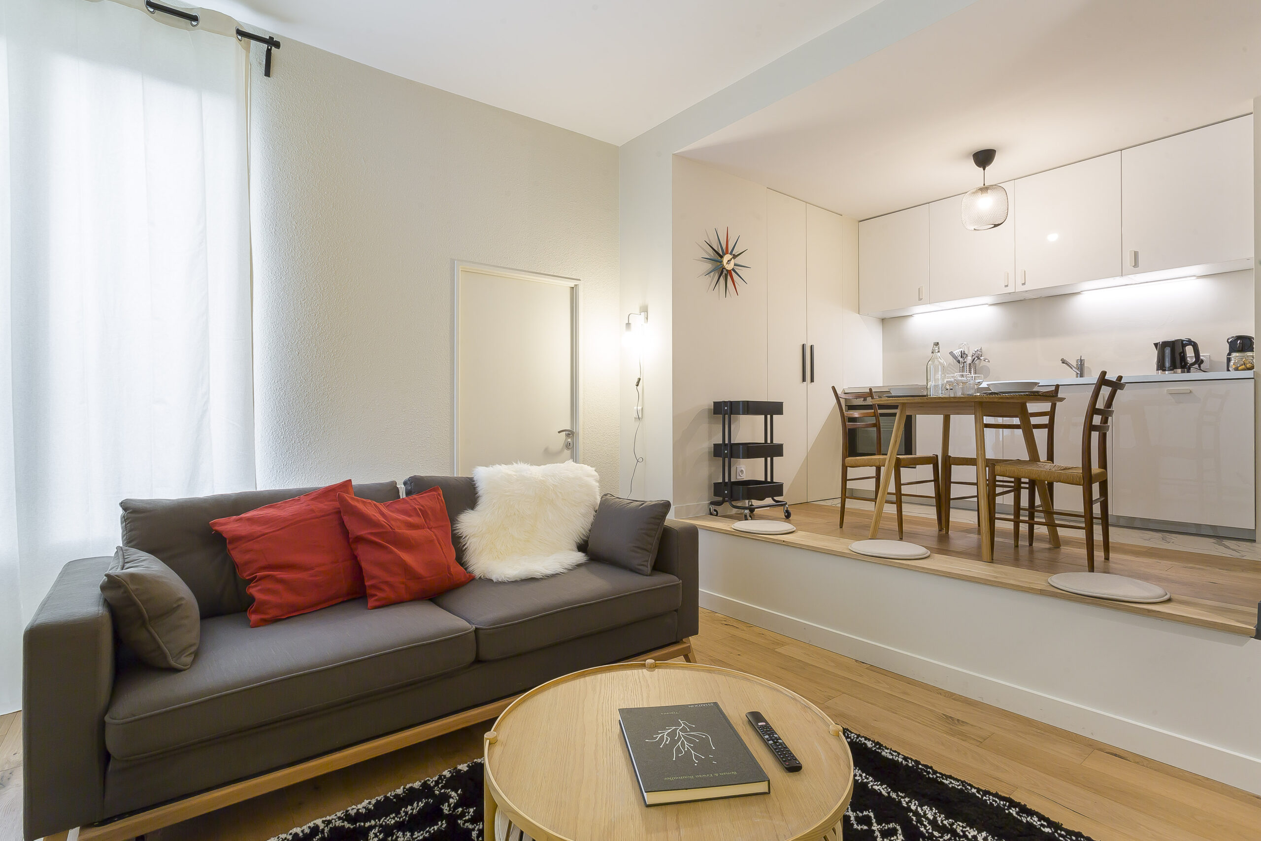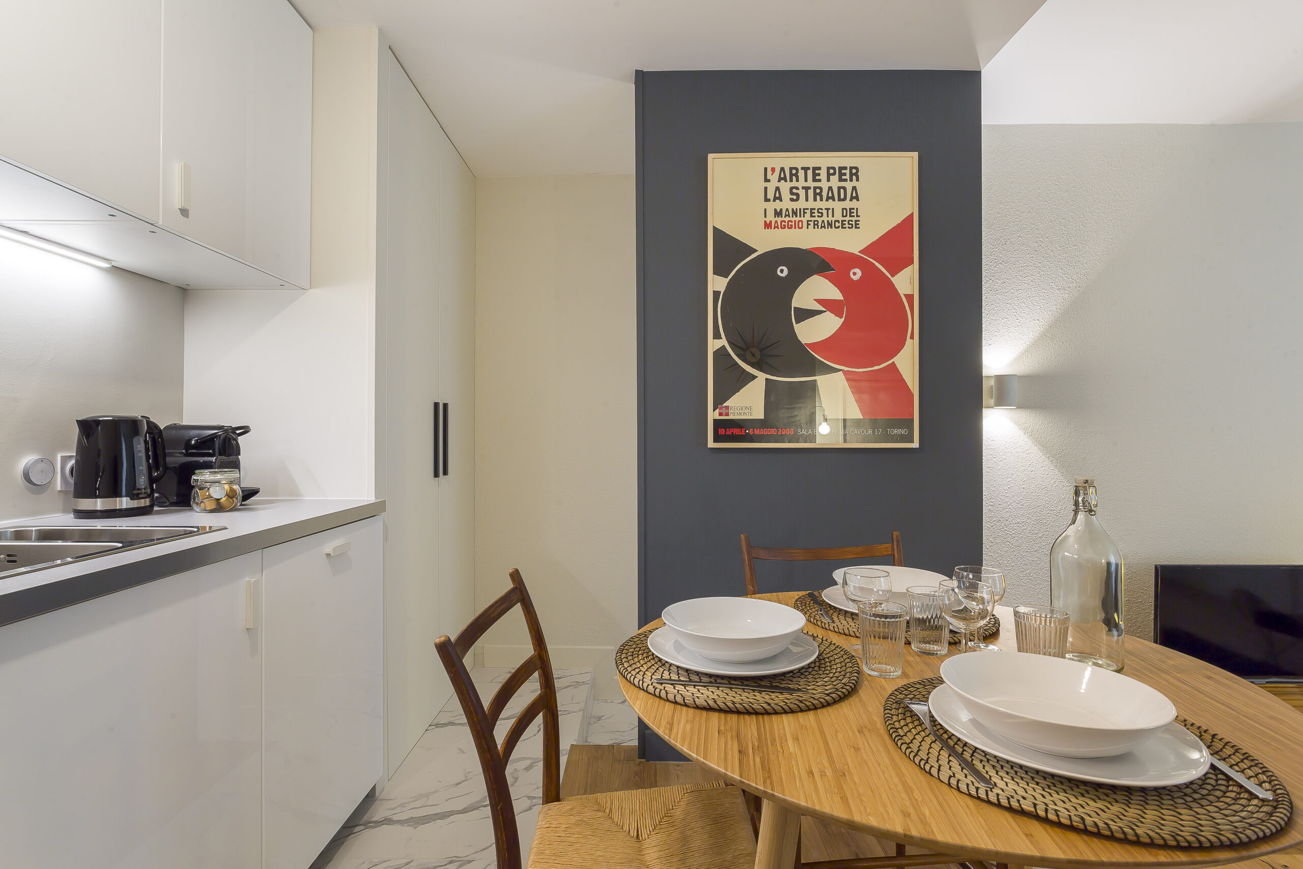 This beautiful 40 m² furnished apartment has been designed and decorated by the Lyon-based architect UNE ARCHITECTE. Ideally located in a quiet area of the 1st arrondissement, right in the city center, it offers both elegance and tranquility.