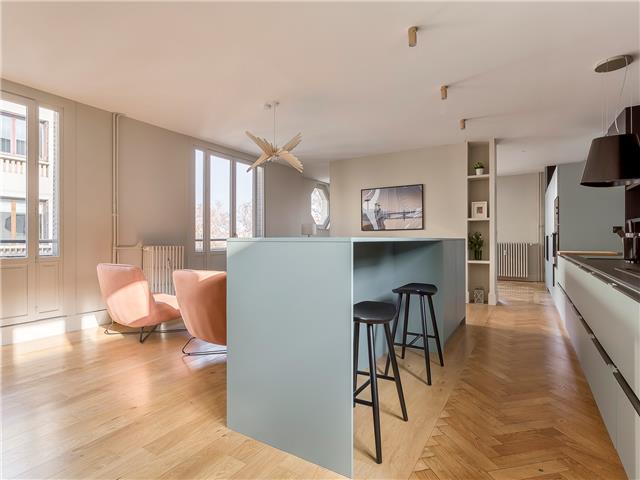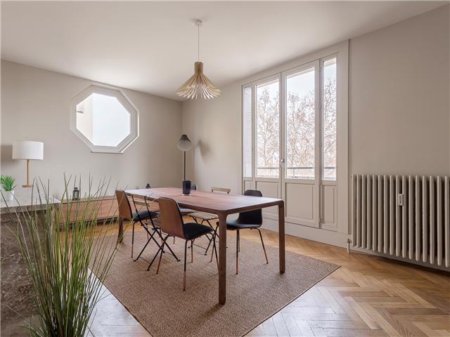 Set on the 6th floor with elevator access, this fully renovated 110m² property impresses with its breathtaking view over the Rhône River, calm atmosphere, and natural brightness. The furnished balconies offer a peaceful outdoor retreat, complete with a table and chairs for your relaxing moments.