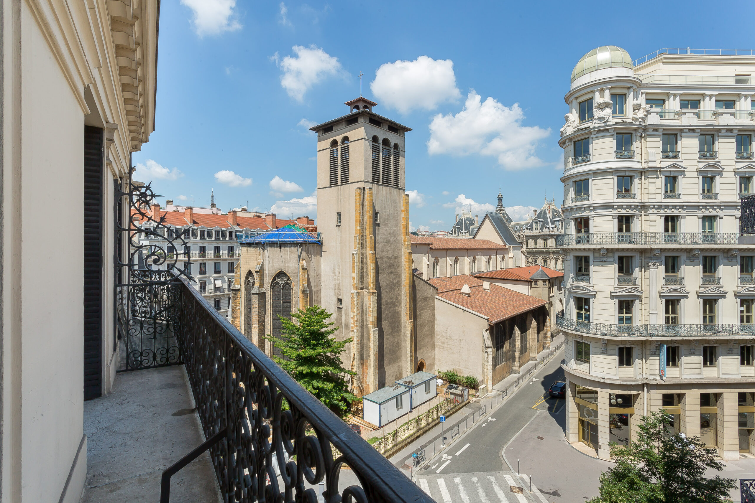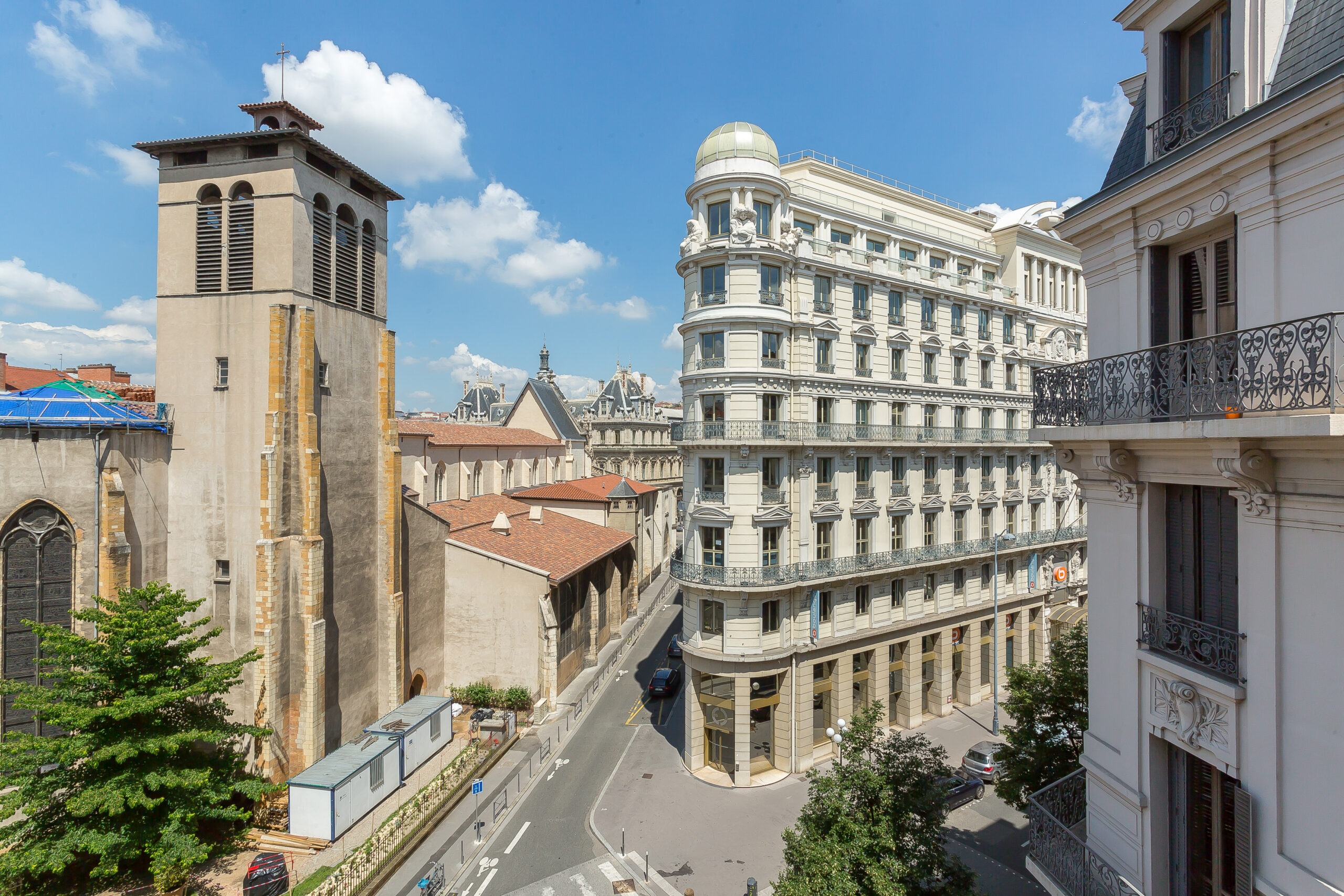 The apartment is situated in the Grolée district, halfway between Cordeliers and Place Bellecour, in an area known for its Haussmannian architecture, elegant shops, public transportation, and proximity to the Rhône riverbanks.