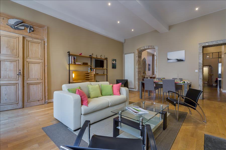 Located just steps from Place des Terreaux, this 75 m² furnished apartment belongs to a magnificent 18th-century historic building.