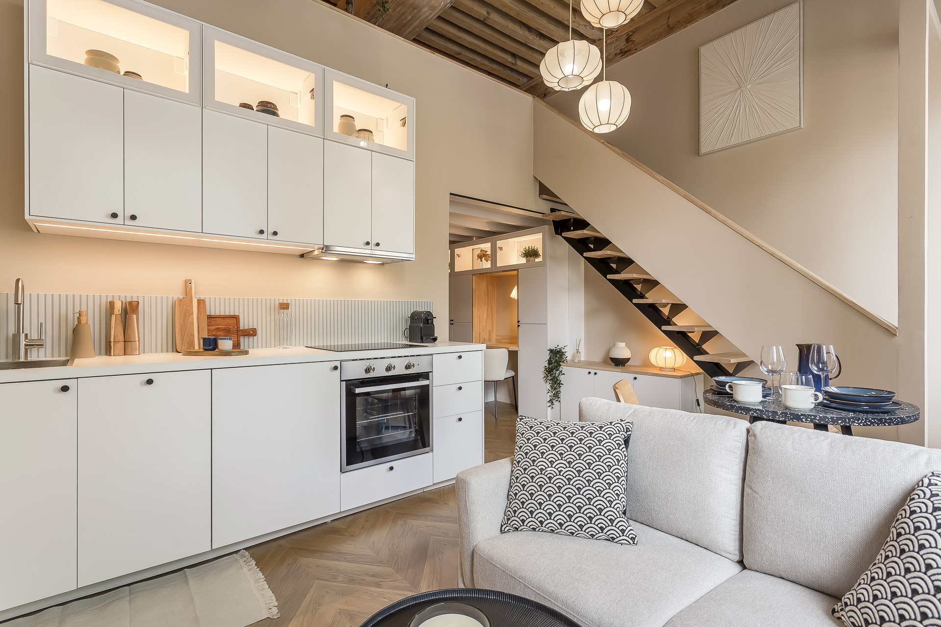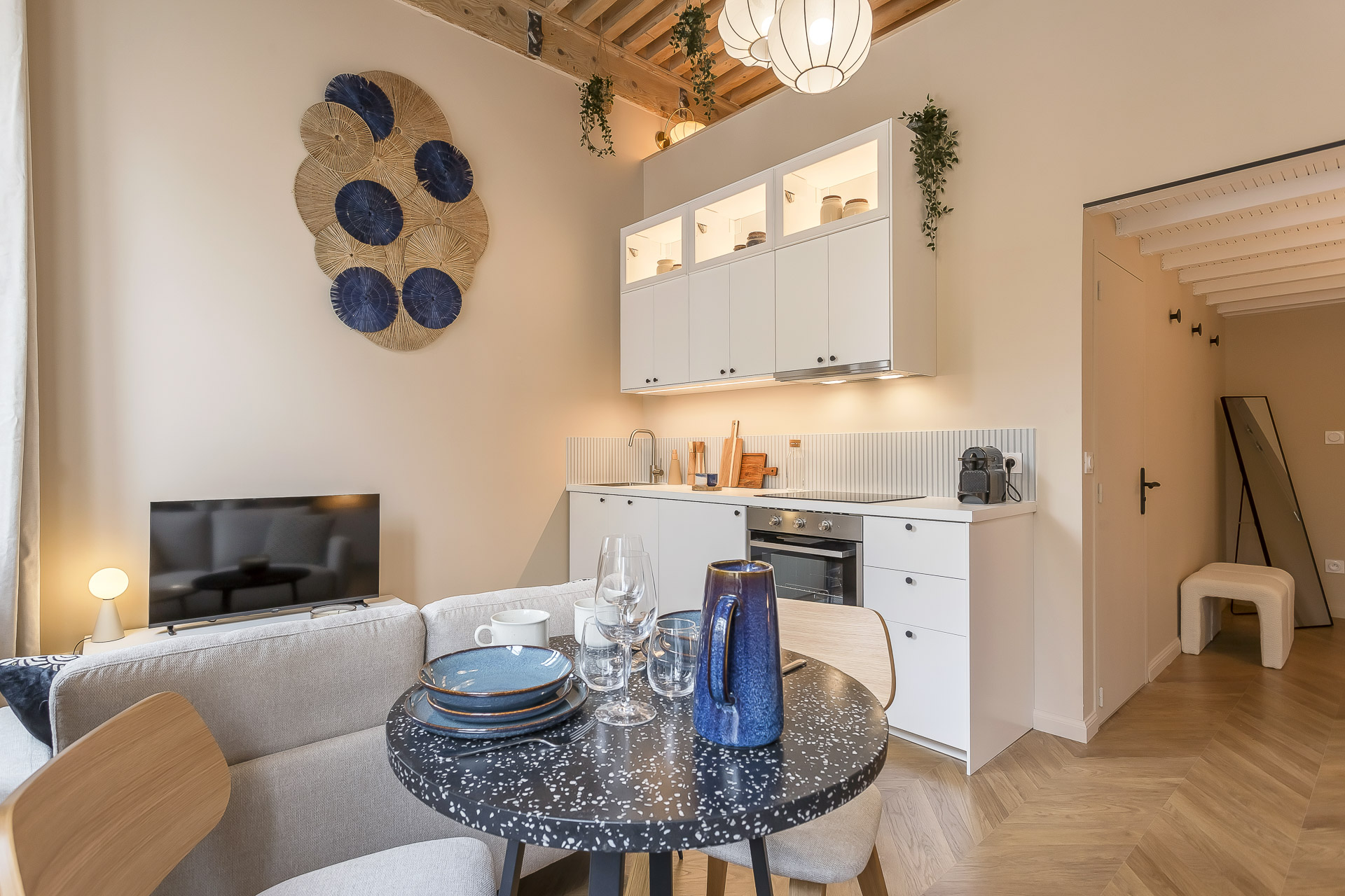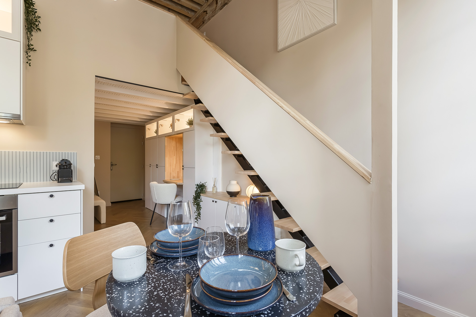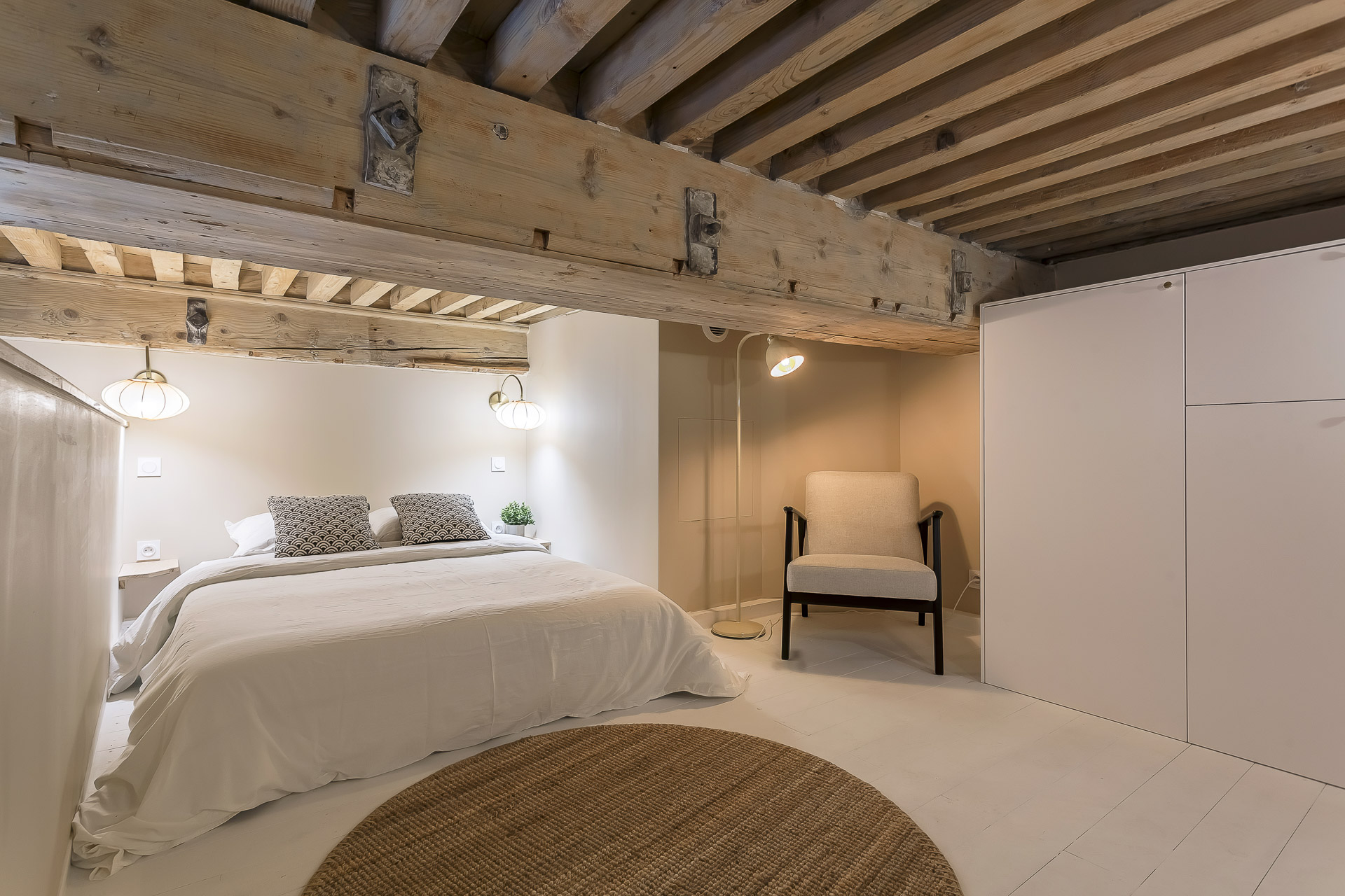 Fully renovated and situated on the 1st floor (no elevator), it combines a contemporary style with a cozy mezzanine and a central location just a few minutes’ walk from the Presqu’île.