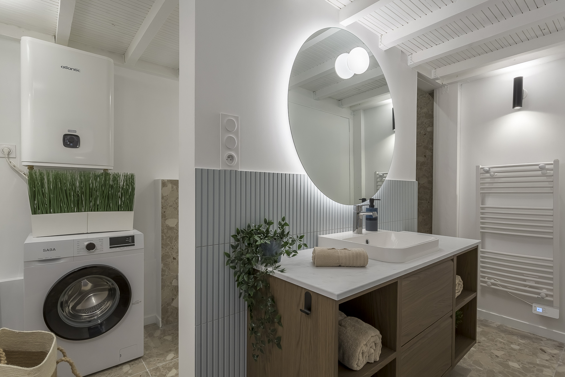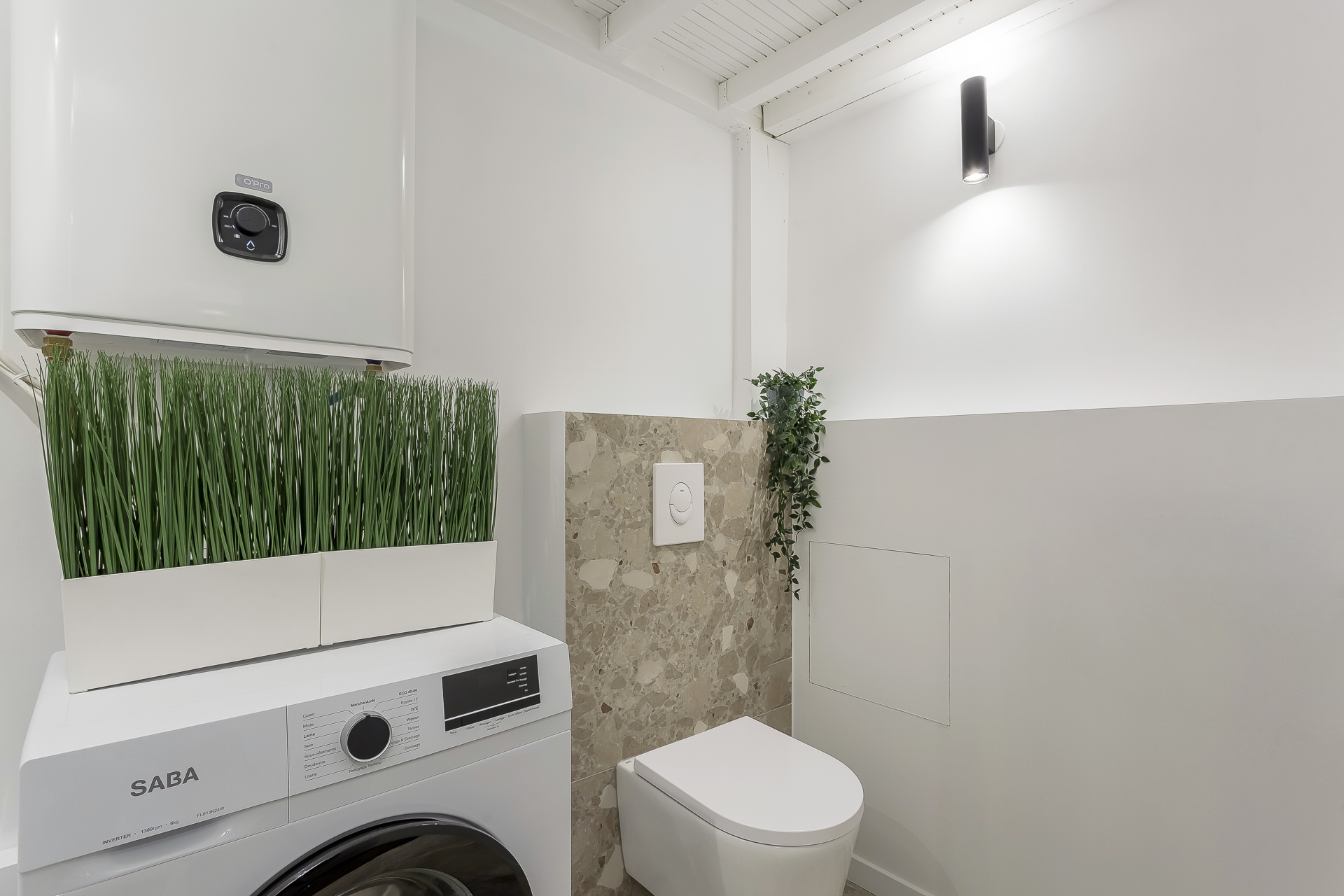 - A modern bathroom with WC and washing machine