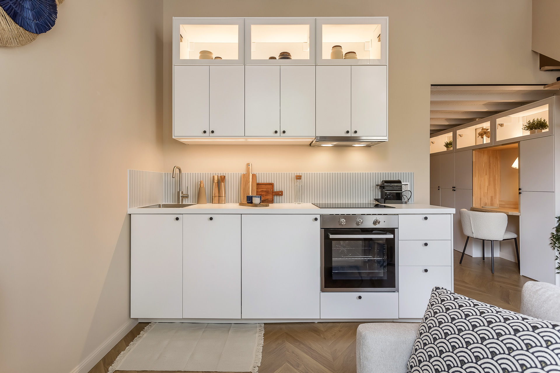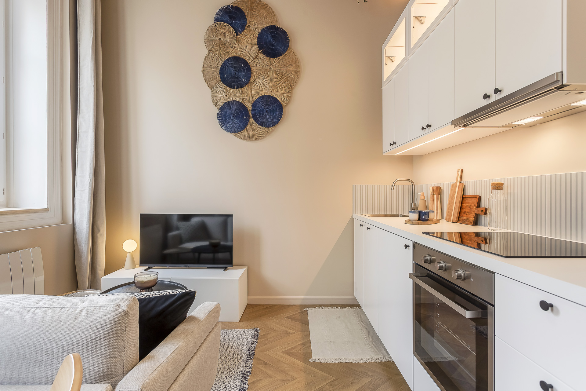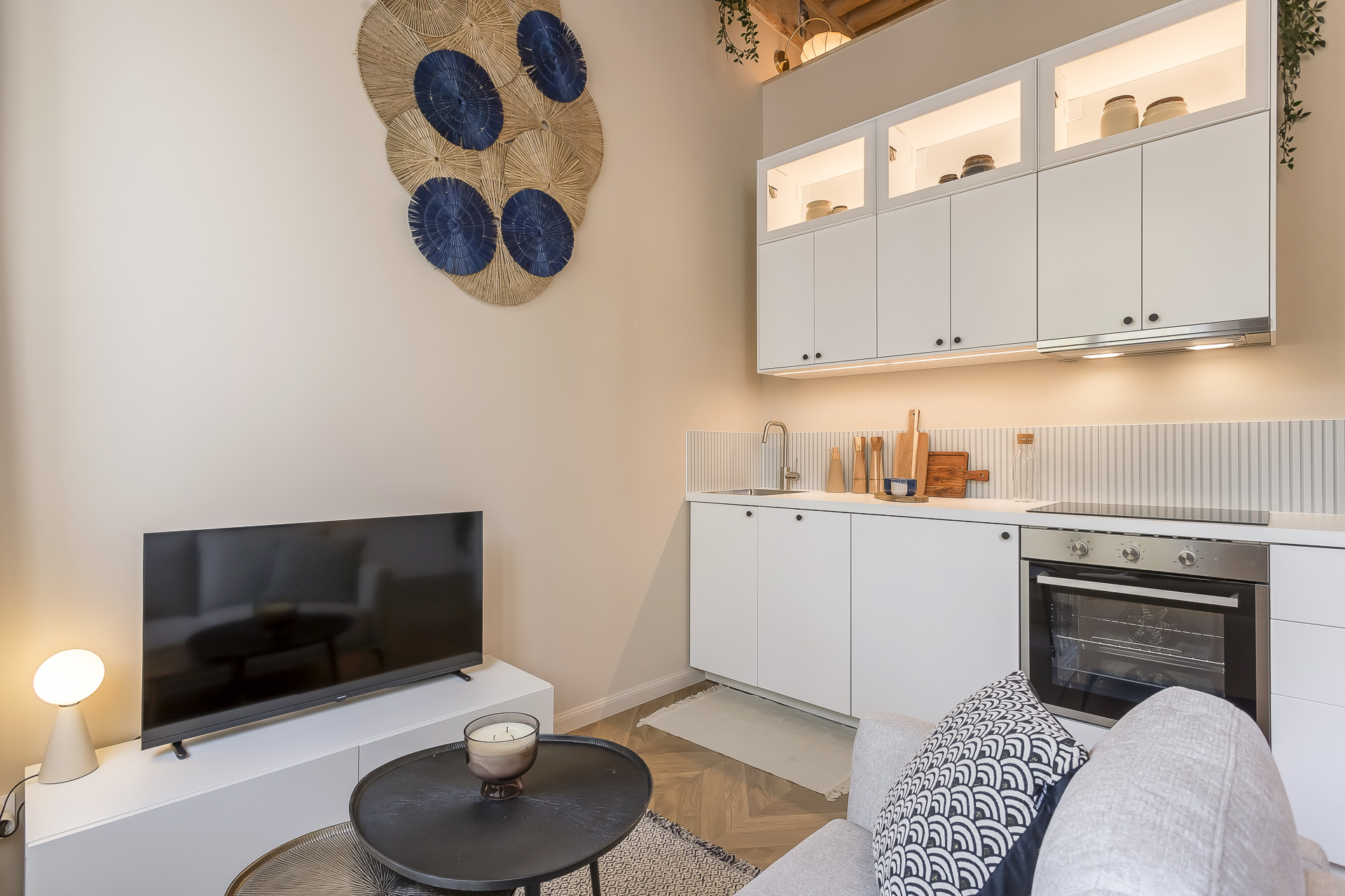 - A bright living room with fully equipped open kitchen