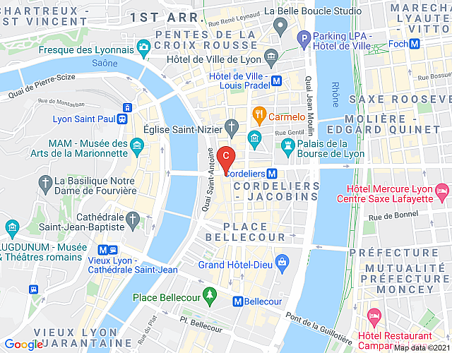 This apartment is set on one of the city center’s most iconic streets: Rue Mercière, also known as Lyon’s “gourmet street.” You’ll be steps from shops, public transportation (Bellecour and Cordeliers metro stations), the Saône riverbanks, the Hôtel-Dieu, and Place des Jacobins.