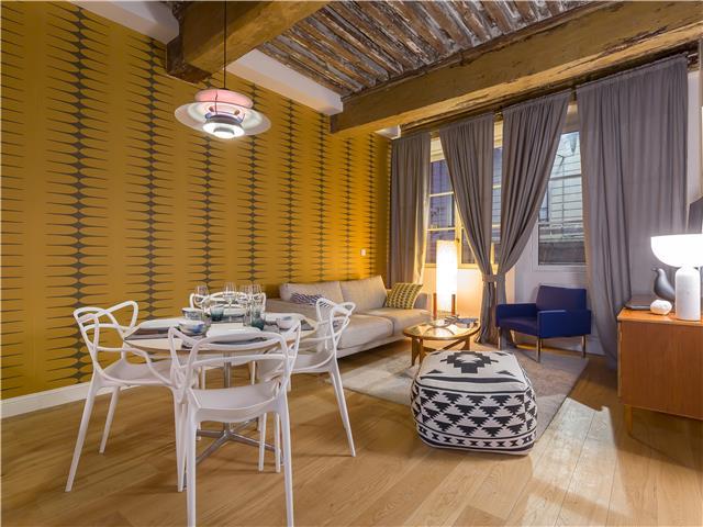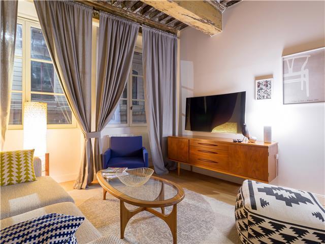 The apartment is located in the sought-after Bellecour district, right next to Rue de la République and the Grand Hôtel-Dieu, a stunning historic building renovated into a shopping, dining, and wellness destination.